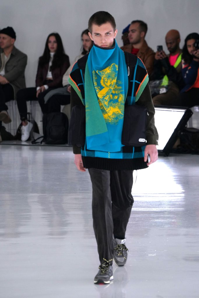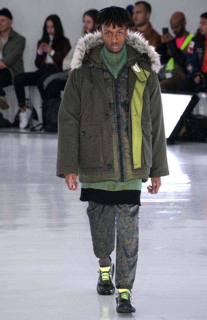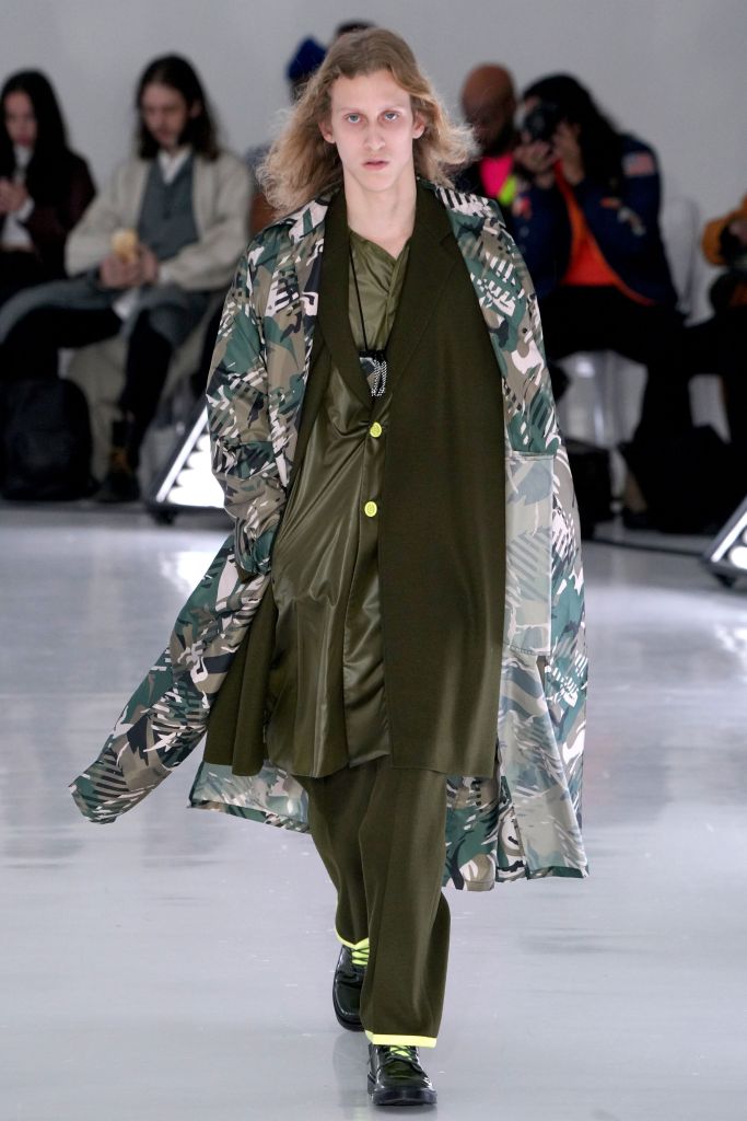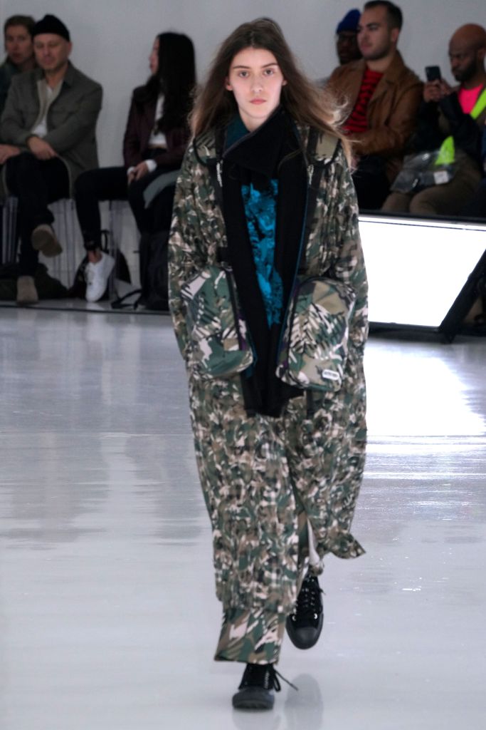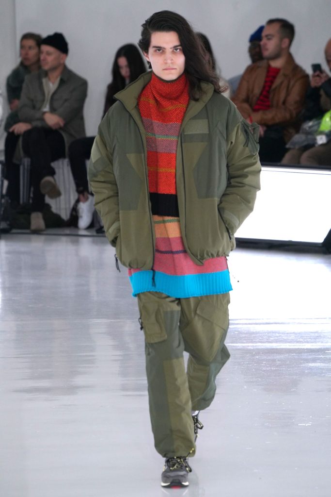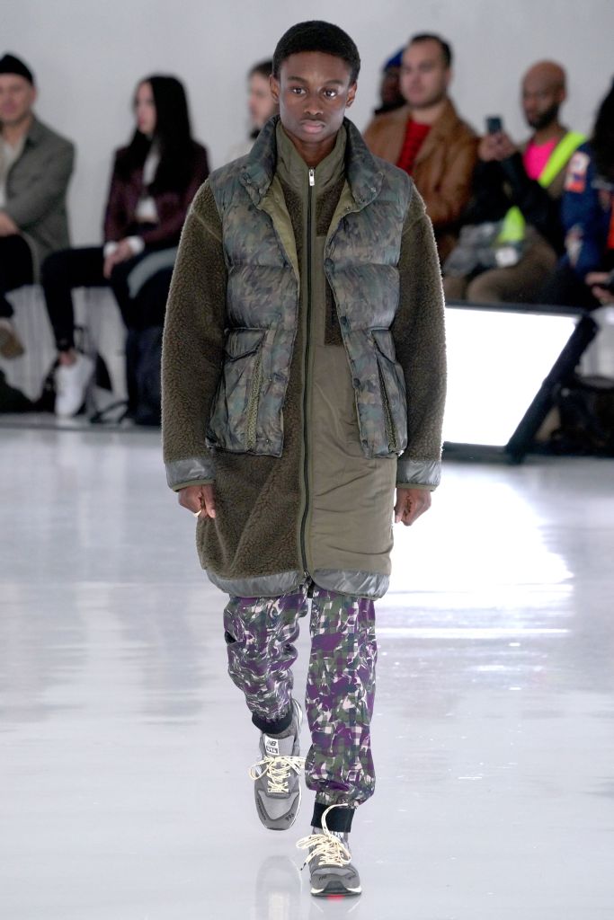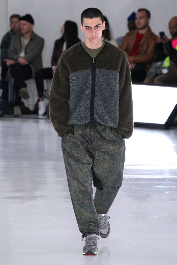 The play on Christmas-like sweaters and the use of bright colors, though oversized in nature, made the proportions feel more controlled and realistic. The designer injected camouflage throughout, from coats and vests to pants, which he mixed with utility elements such as an army green elongated fleece jacket that made the lineup feel of-the-now with a less gimmicky vibe.