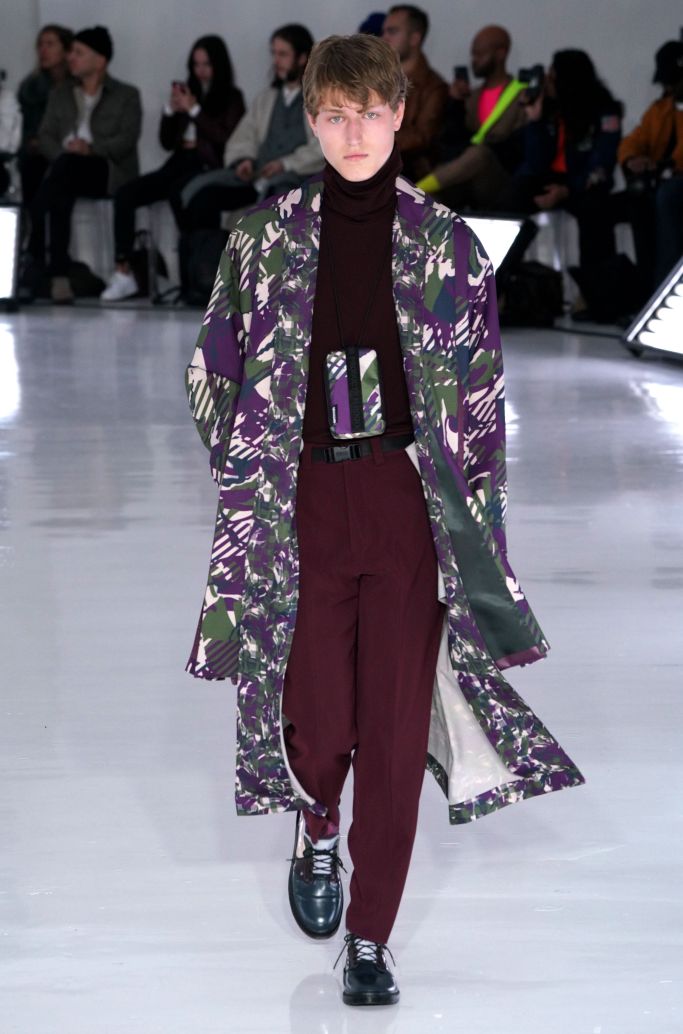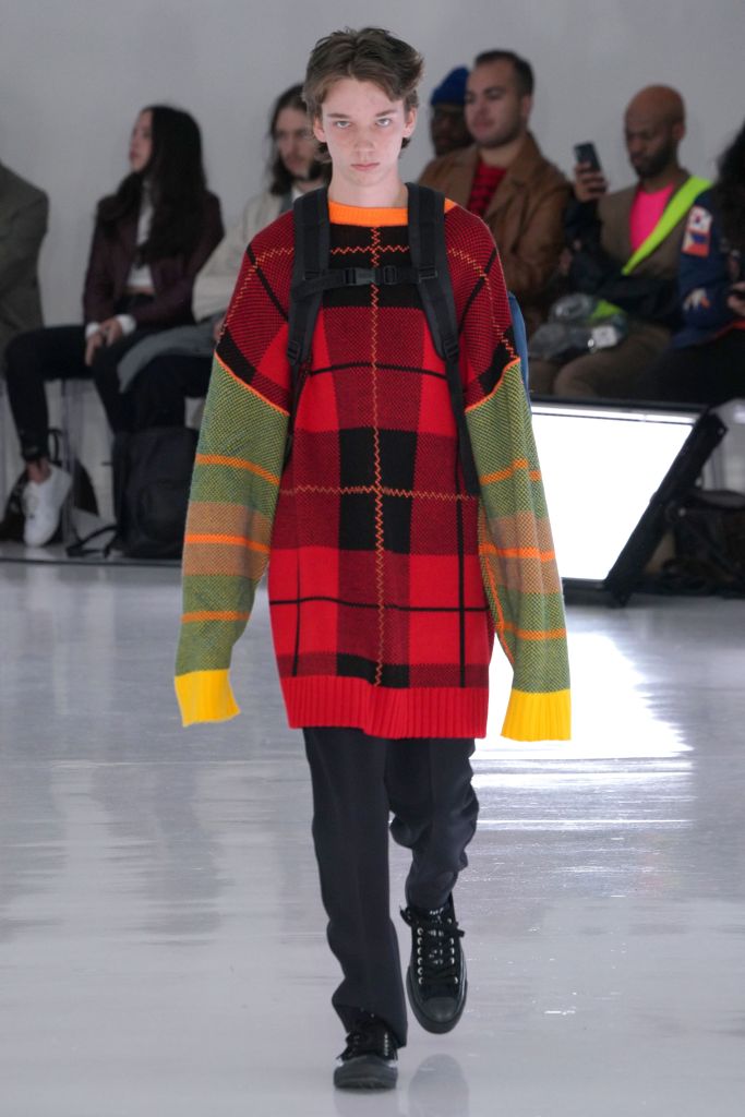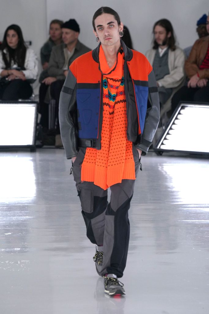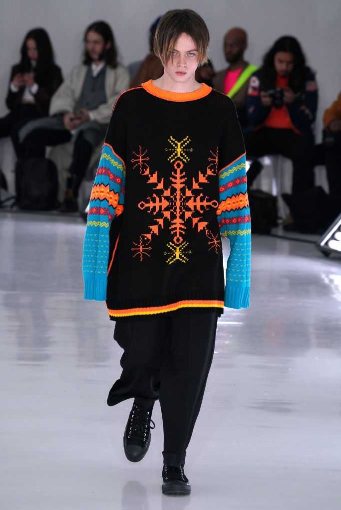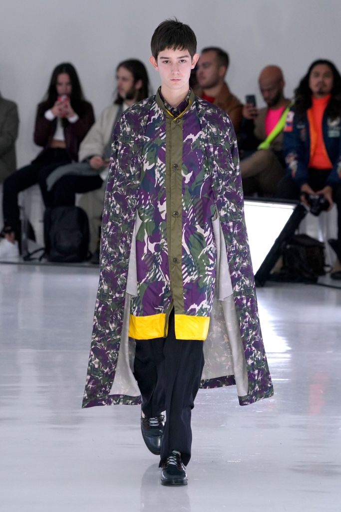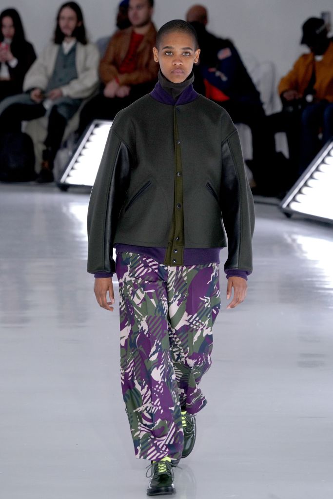 The play on Christmas-like sweaters and the use of bright colors, though oversized in nature, made the proportions feel more controlled and realistic. The designer injected camouflage throughout, from coats and vests to pants, which he mixed with utility elements such as an army green elongated fleece jacket that made the lineup feel of-the-now with a less gimmicky vibe.