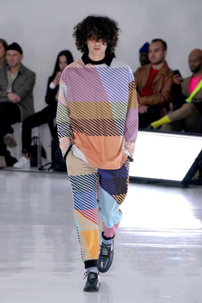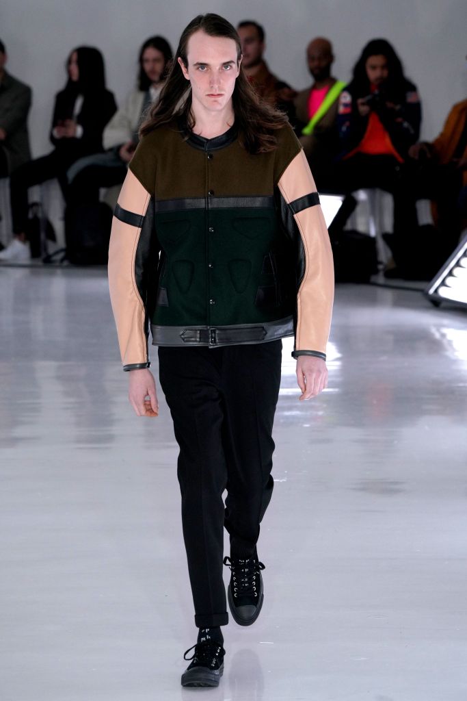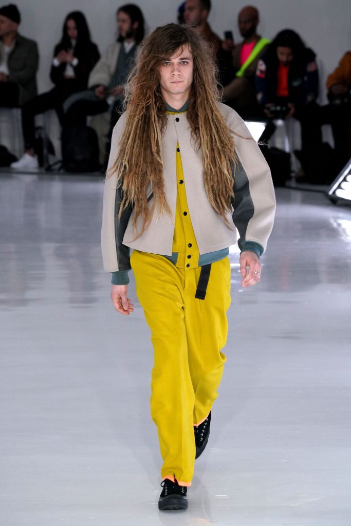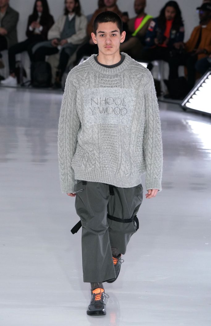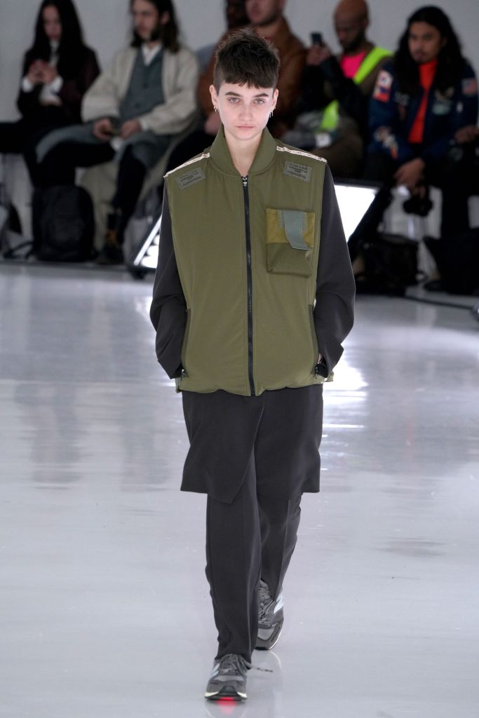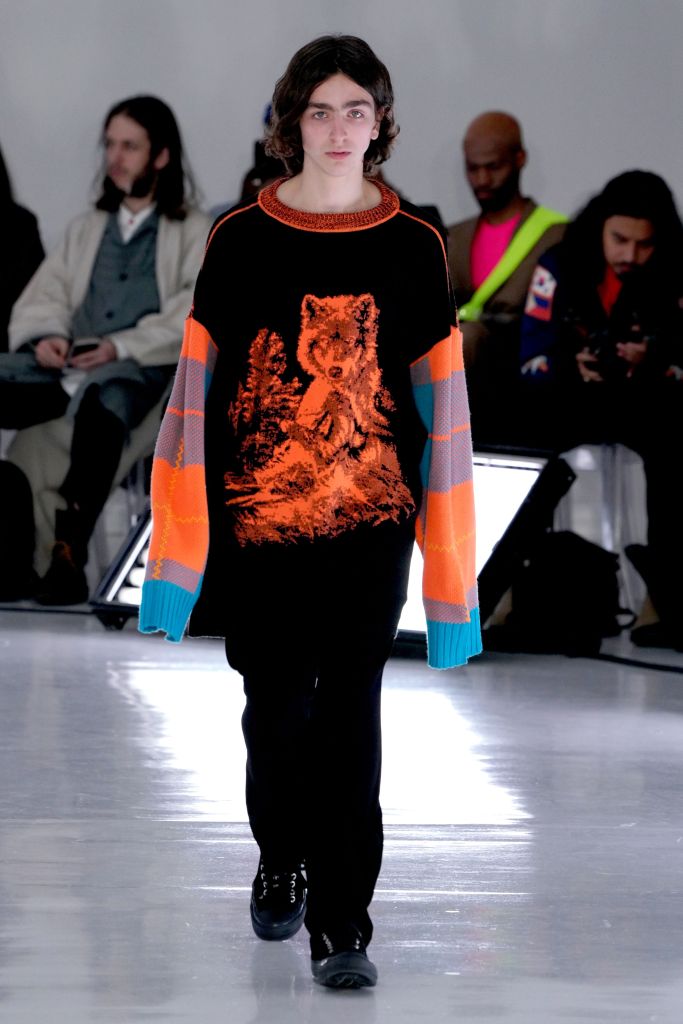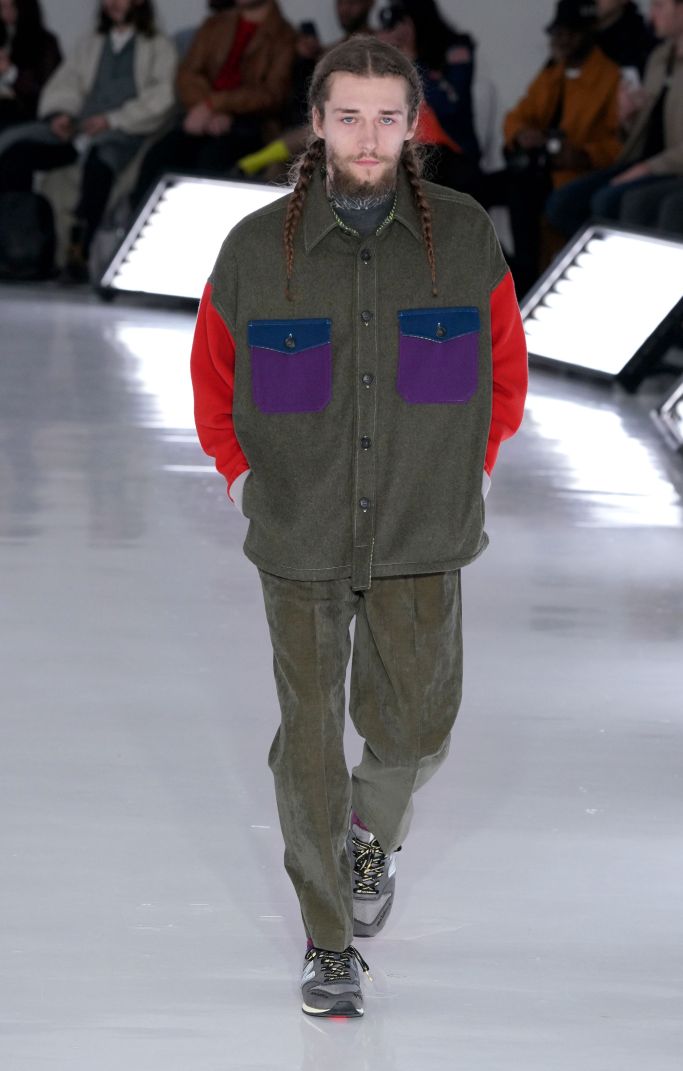 The play on Christmas-like sweaters and the use of bright colors, though oversized in nature, made the proportions feel more controlled and realistic. The designer injected camouflage throughout, from coats and vests to pants, which he mixed with utility elements such as an army green elongated fleece jacket that made the lineup feel of-the-now with a less gimmicky vibe.
