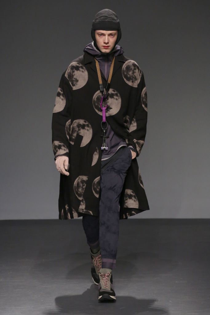 And a ubiquitous moon-pattern print that he used in coats, silky shirts, scarves and leggings was part of his fictitious mountainous climb to the moon.