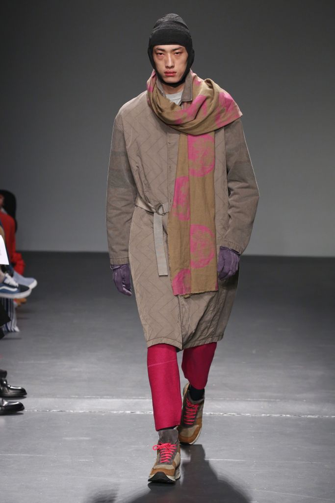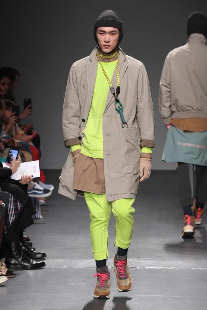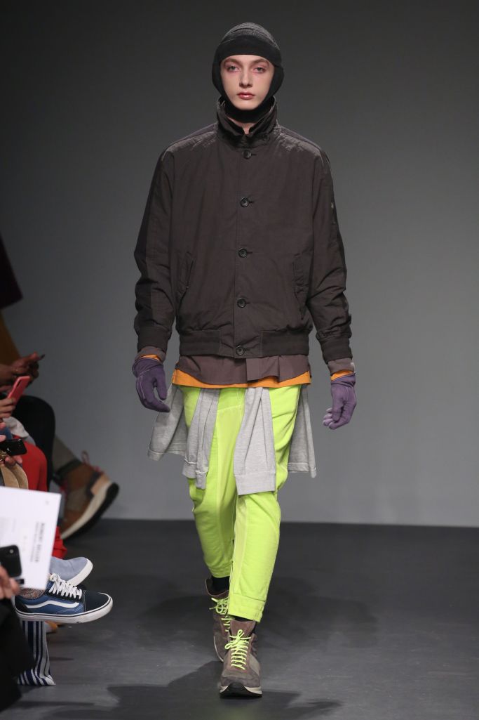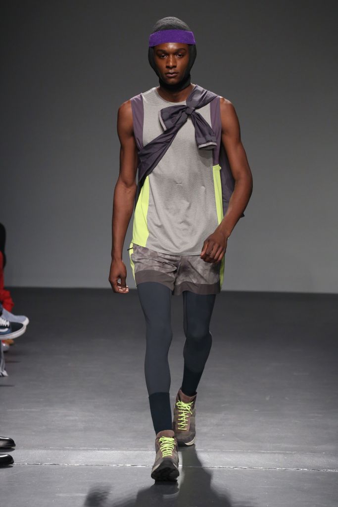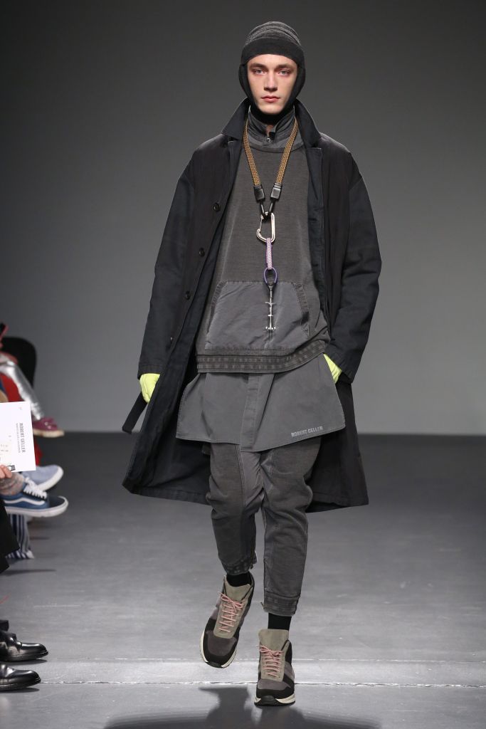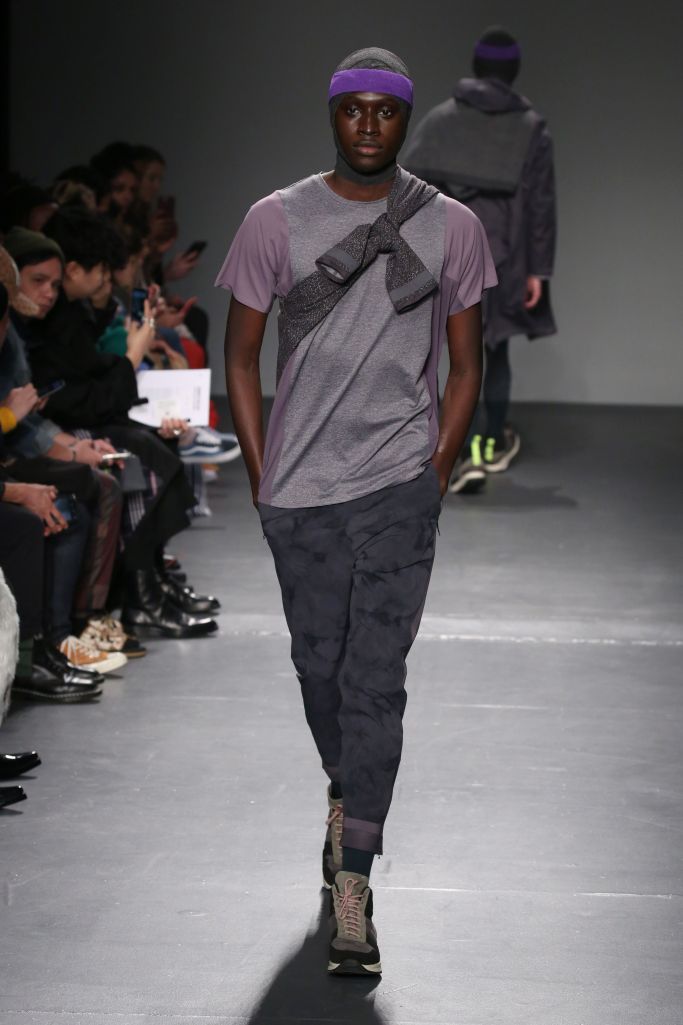Robert Geller is taking us on a mountain-climbing expedition this fall.After a three-season hiatus, the designer returned to New York Fashion Week: Men’s with a collection that took him into new territory. He applied his traditional romantic DNA to a performance-driven lineup spurred on by a new collaboration with Lululemon.“Lulu pushed me in that direction,” he said. “But it’s also the spirit of the times and knowing the functionality of the garments.” The use of bright neon greens and fuchsias in sweatshirts, pants and suits kept the athletic spirit at an all-time high.