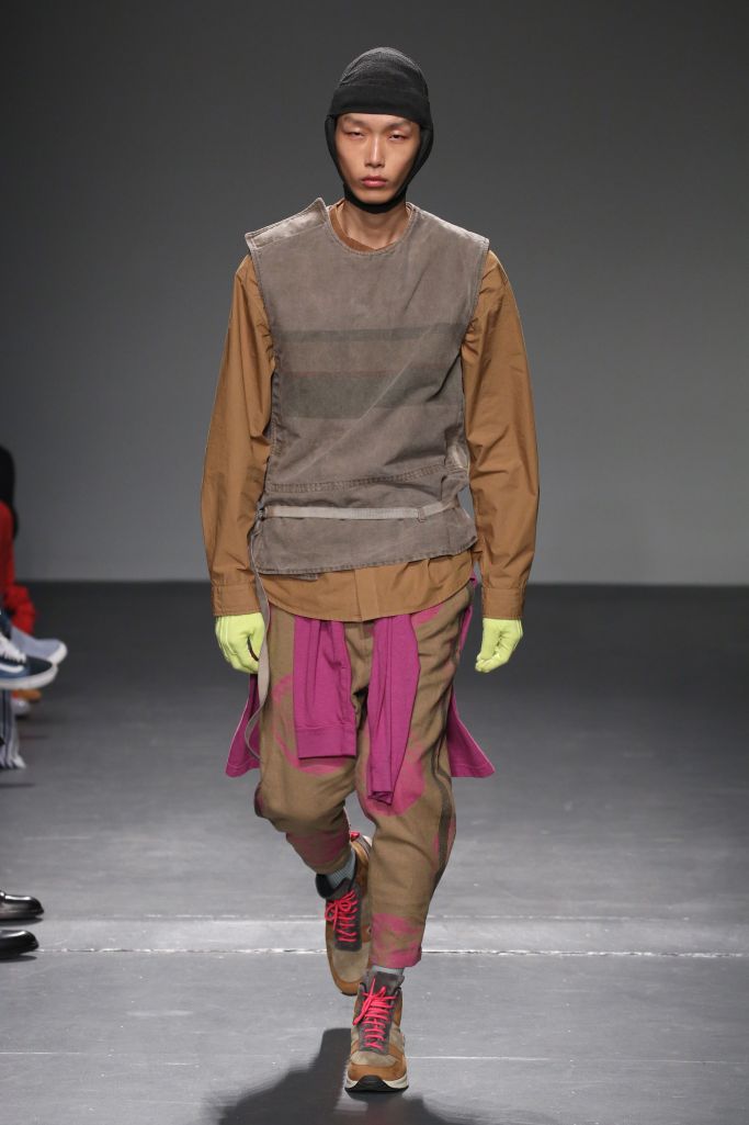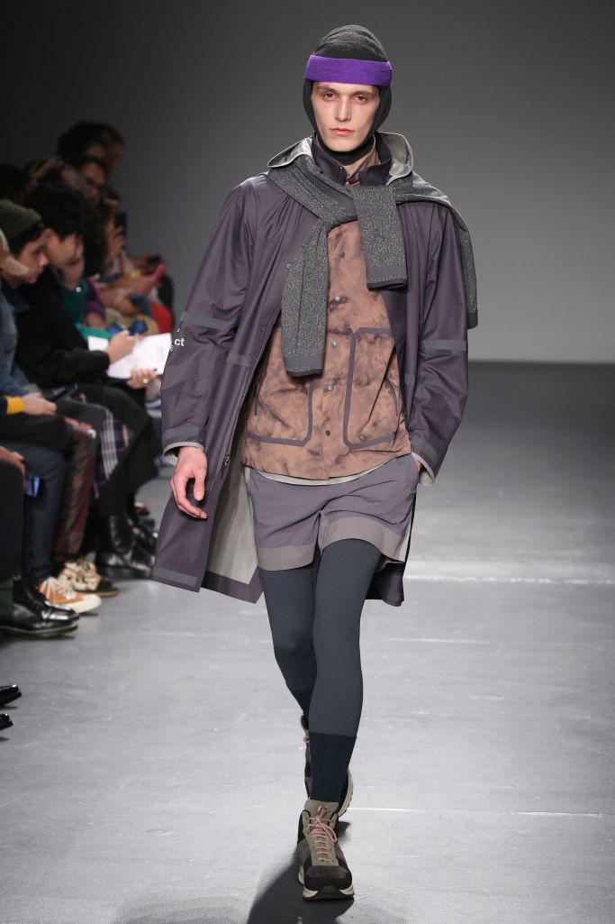 The latest partnership with Common Projects resulted in a chic, high-tech hiking boot/sneaker that, paired with outdoor-inspired pants with articulated knees, that drove the message home.