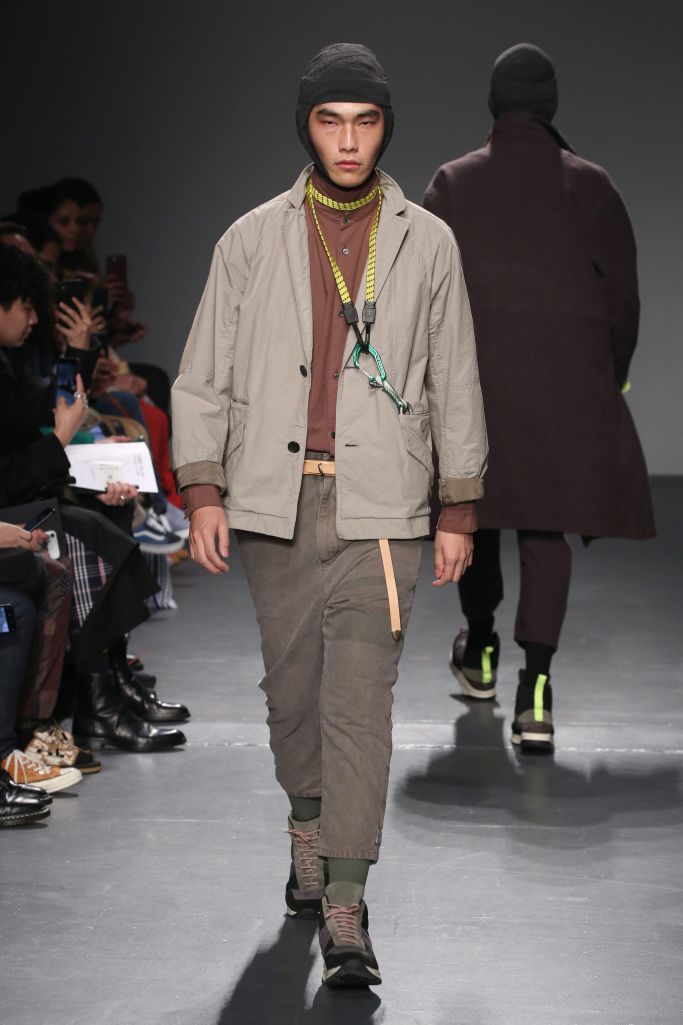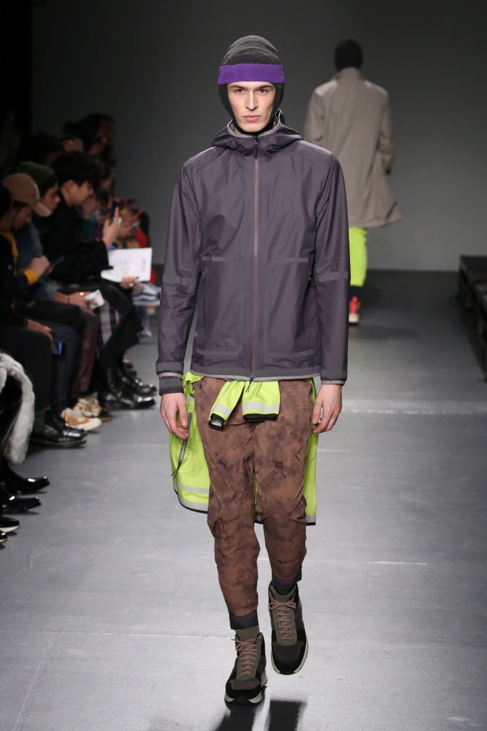 The latest partnership with Common Projects resulted in a chic, high-tech hiking boot/sneaker that, paired with outdoor-inspired pants with articulated knees, that drove the message home.
