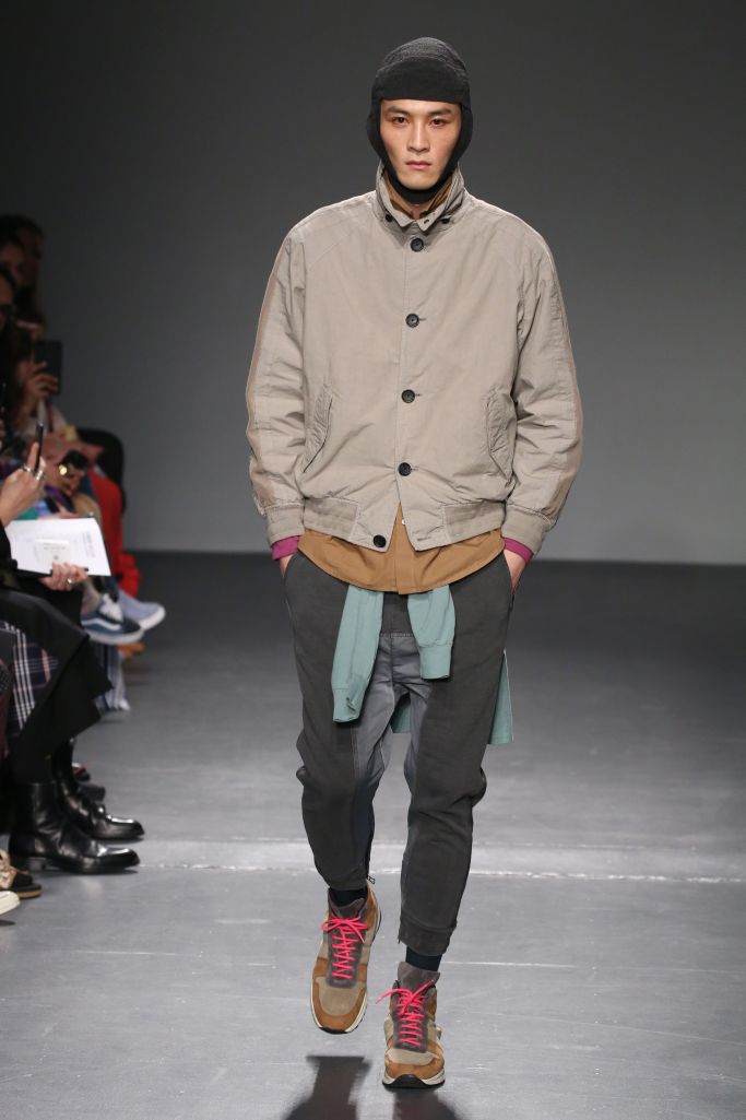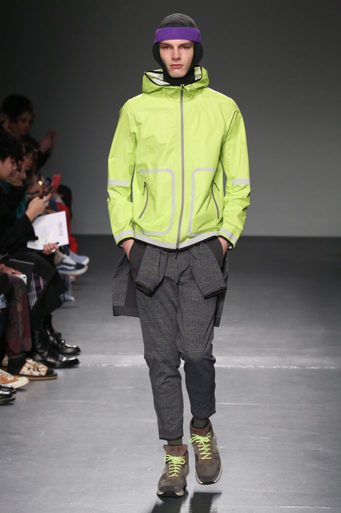 Robert Geller is taking us on a mountain-climbing expedition this fall.After a three-season hiatus, the designer returned to New York Fashion Week: Men’s with a collection that took him into new territory. He applied his traditional romantic DNA to a performance-driven lineup spurred on by a new collaboration with Lululemon.“Lulu pushed me in that direction,” he said. “But it’s also the spirit of the times and knowing the functionality of the garments.” The use of bright neon greens and fuchsias in sweatshirts, pants and suits kept the athletic spirit at an all-time high.