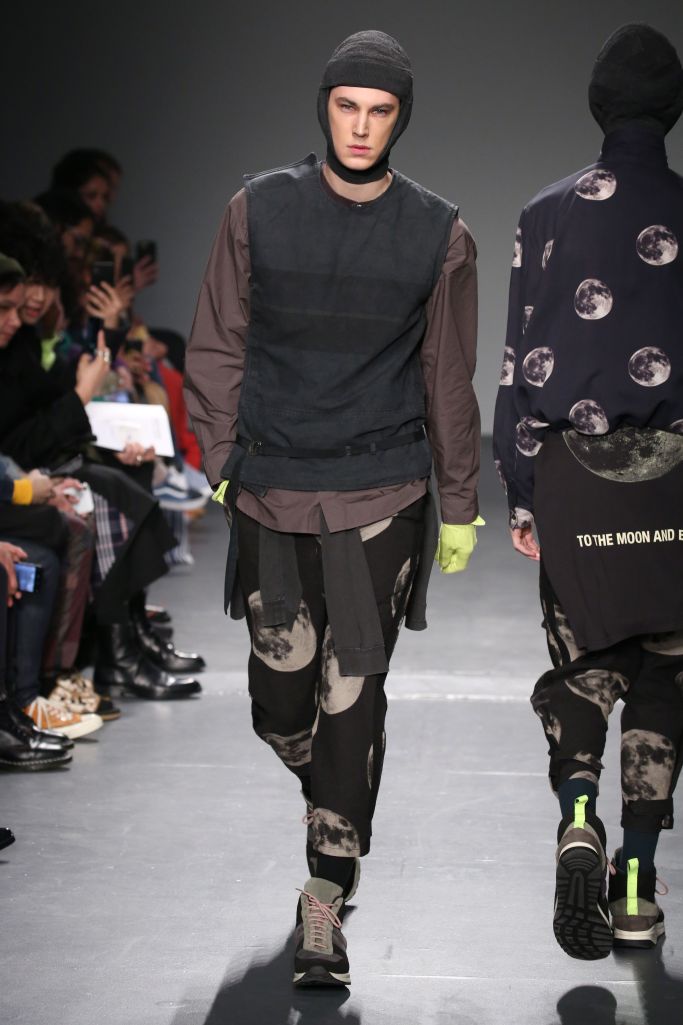 A take on the slogan “I love you to the moon and back” was added to hooded sweatshirts and served as a reminder that Geller is still a romantic at heart. While the Lululemon collaboration set the tone, Geller’s main collection concentrated around layered wool garments with some innovative dying techniques as seen in oversize wool coats, blazers and jackets all with nylon 3-D utility pockets.