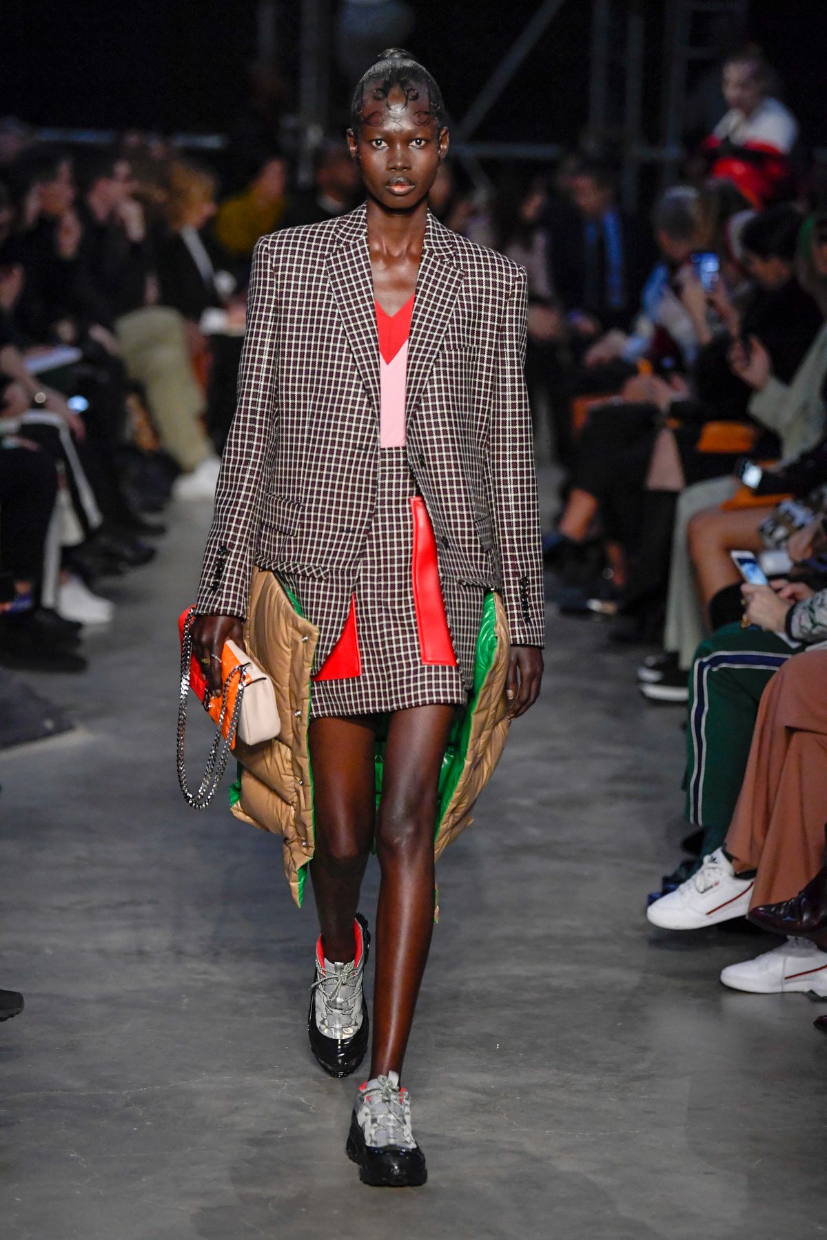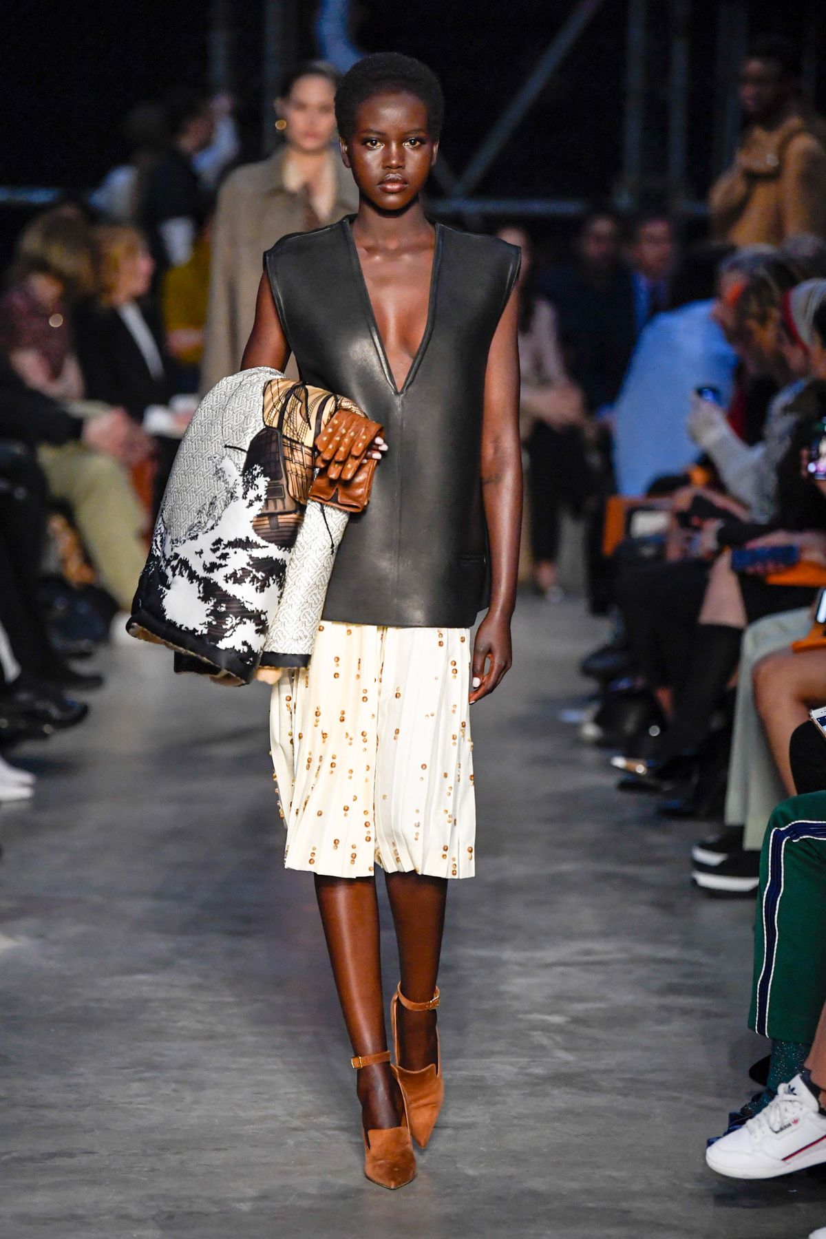 The designer has never made a secret of his intentions: He wants to dress everybody — mothers and daughters, fathers and sons — and one of the company’s flagship strategies has been to sell head-to-toe dressing to the consumer. Tisci said Sunday that Burberry is about “including, not excluding.” His fashion show took place at Tate Modern in two very different rooms, one spare and concrete, with kids climbing around scaffolding and chain-link fence lining the walls. The other was done in discreet, sweet-smelling wood, and with seating more like a classy concert hall. Two soundtracks, spanning a variety of decades and moods, came courtesy of M.I.A.