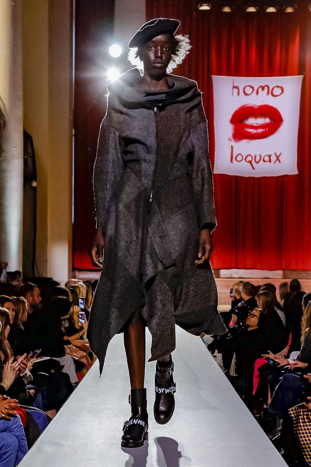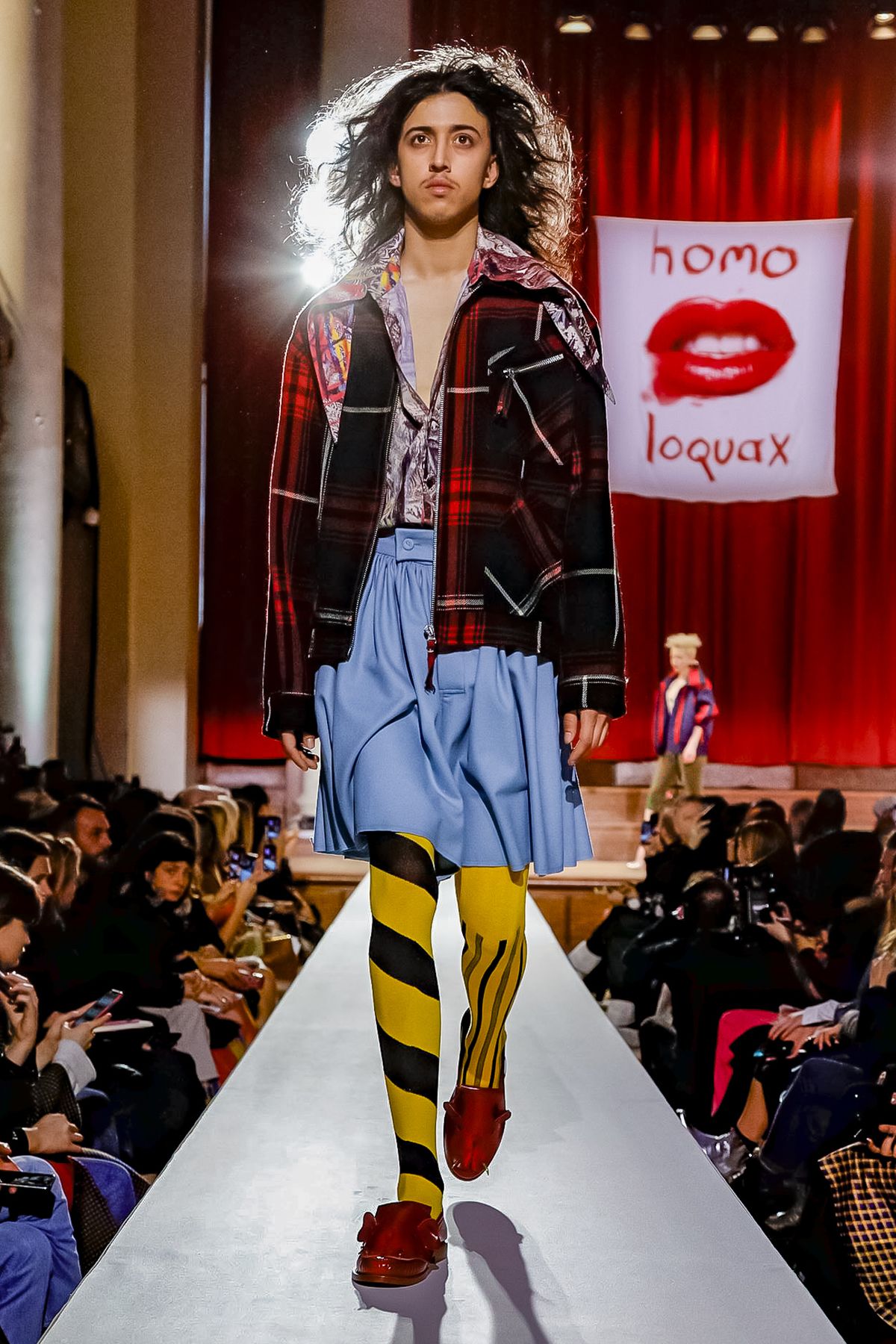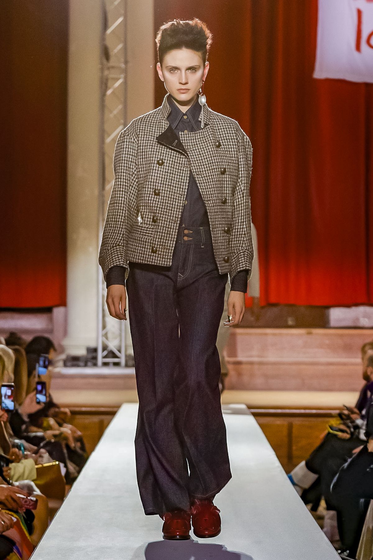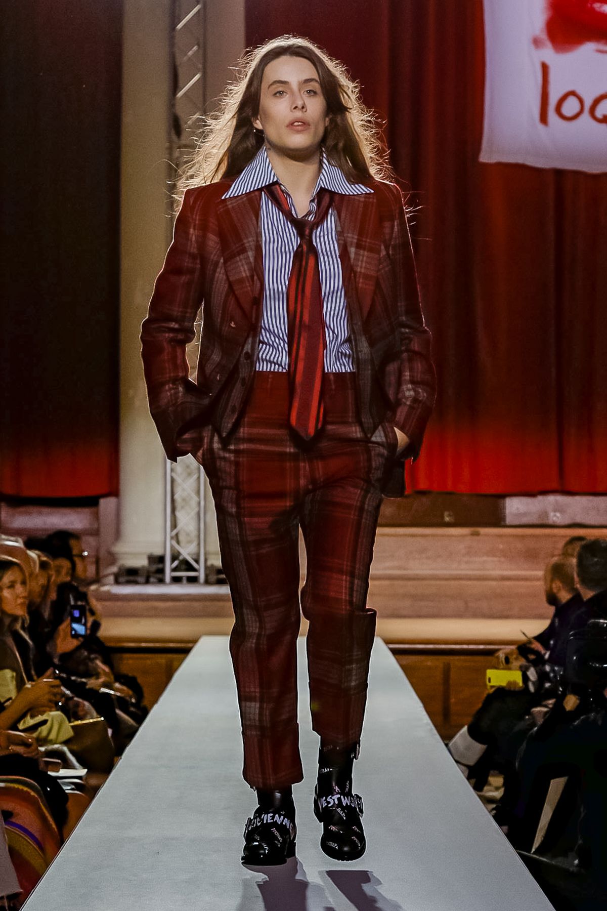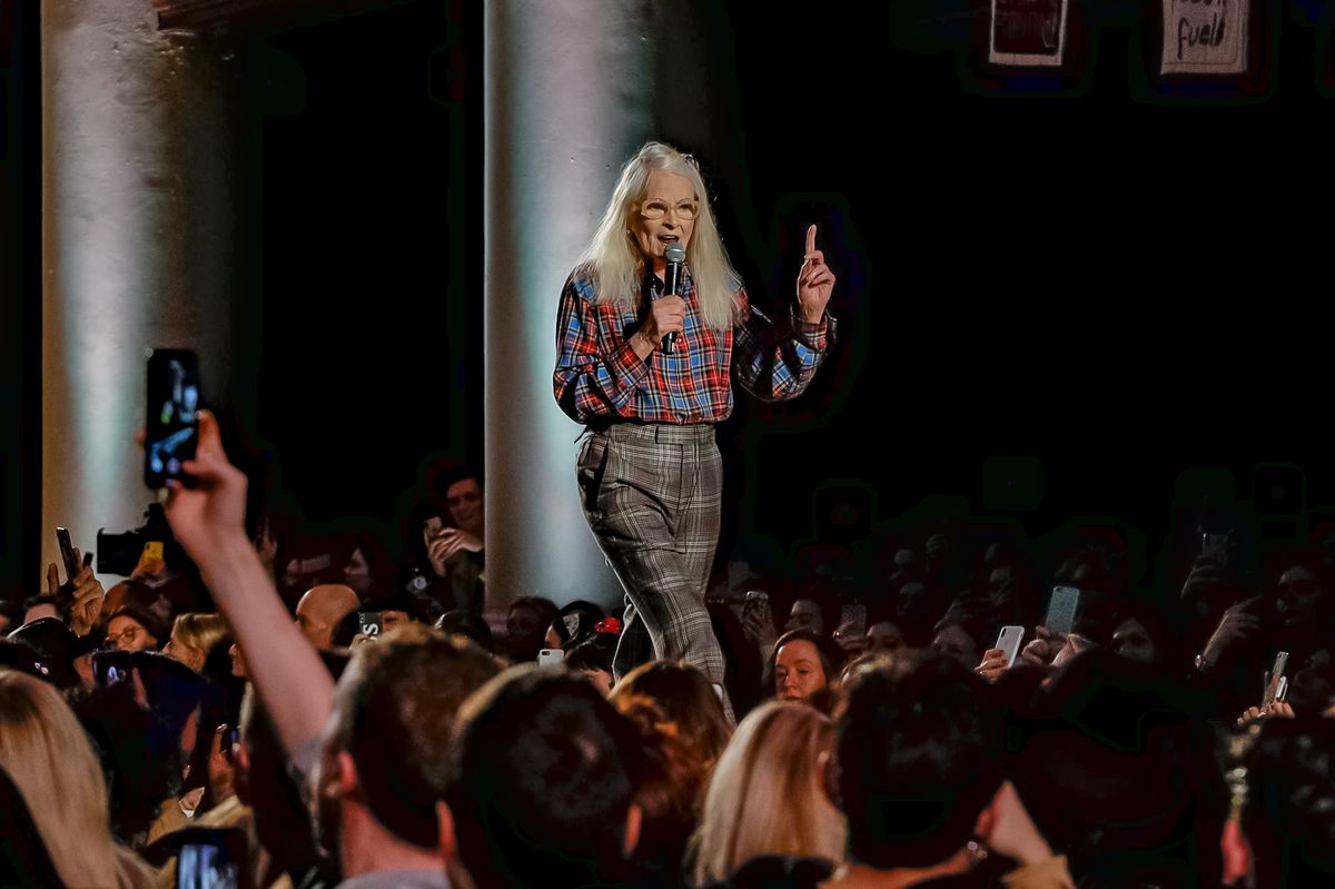 “I bought this coat last year, it’s called the Prince Coat; it’s a classic,” announced model and activist Hugo Hamlet, proudly gesturing to his oversized checked topper which, in truth, was from the fall 2018 collection, one of Westwood’s favorite styles; she repeats it every season. Fair enough; it’s a nice coat.