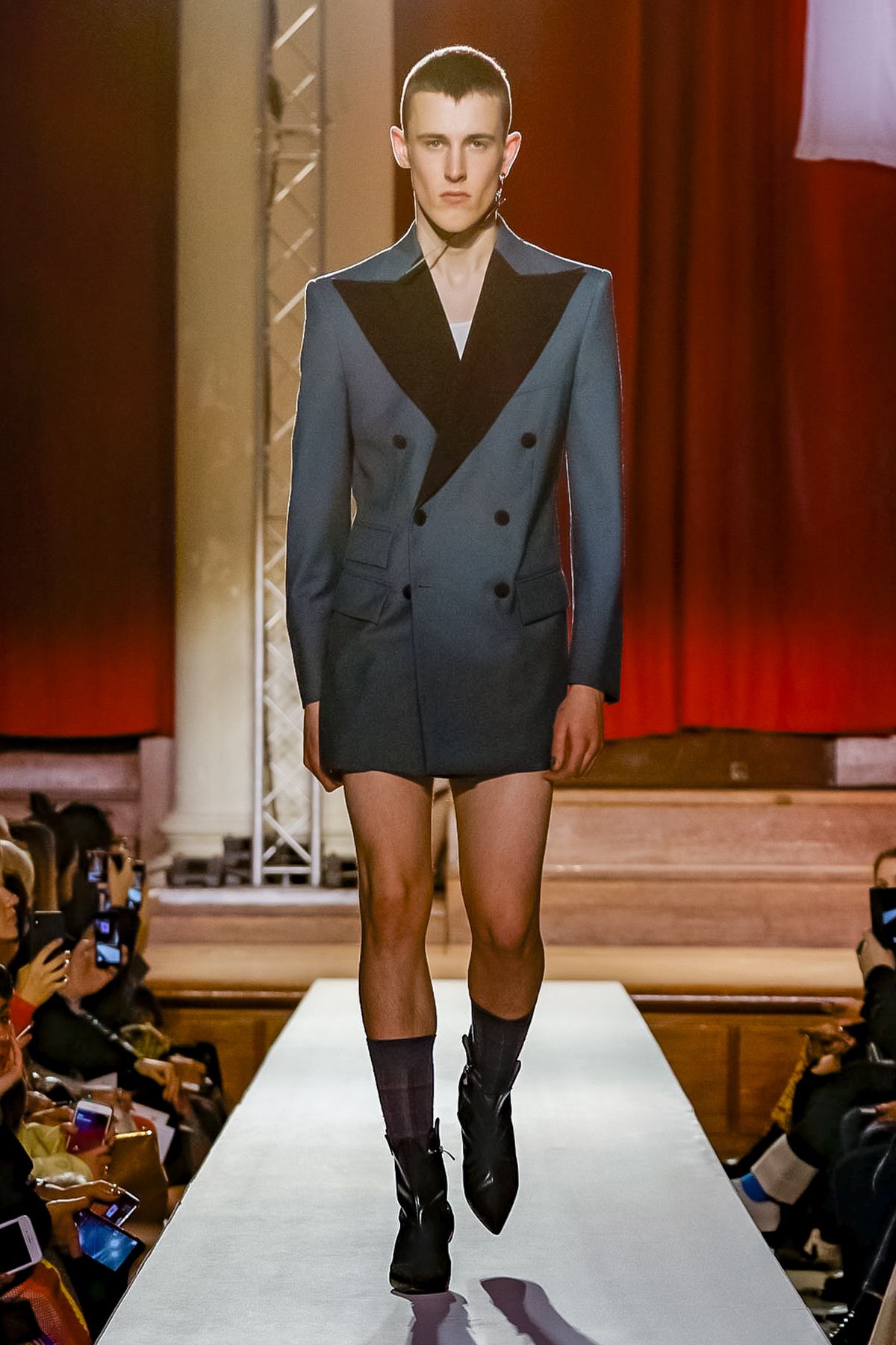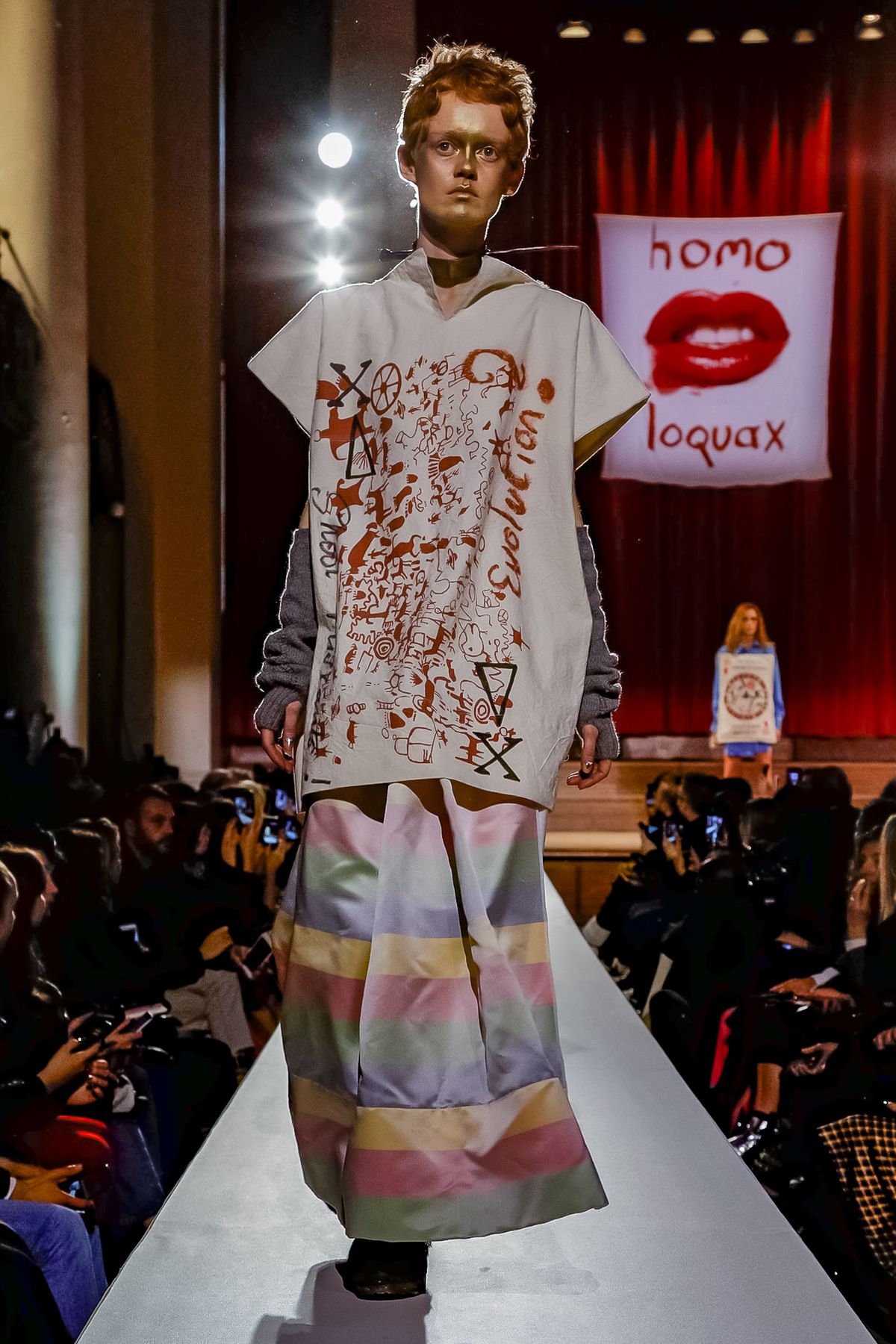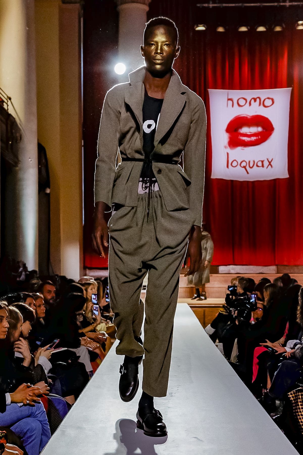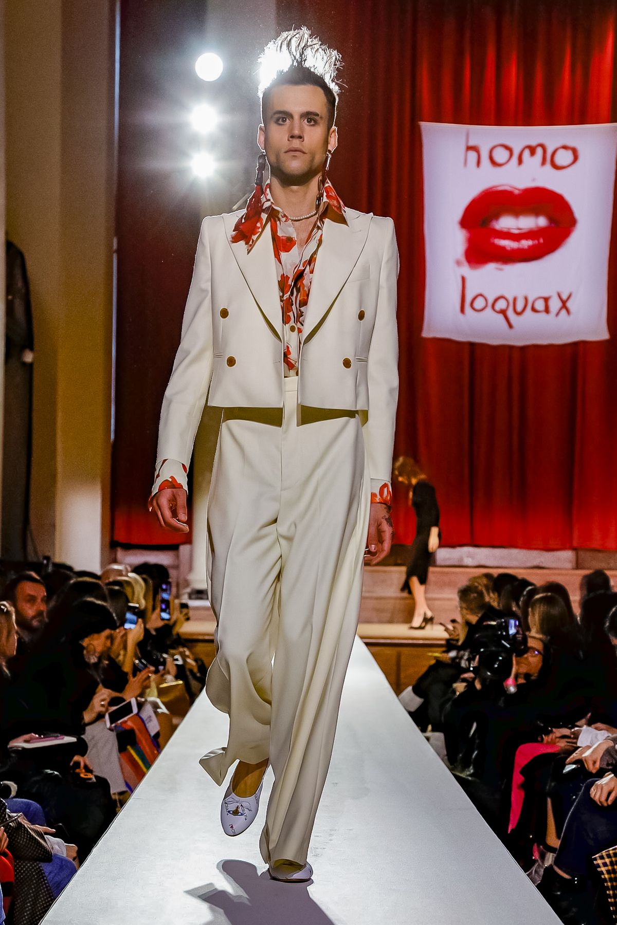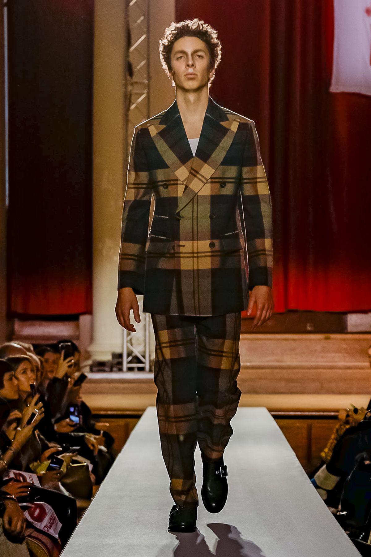 “I bought this coat last year, it’s called the Prince Coat; it’s a classic,” announced model and activist Hugo Hamlet, proudly gesturing to his oversized checked topper which, in truth, was from the fall 2018 collection, one of Westwood’s favorite styles; she repeats it every season. Fair enough; it’s a nice coat.