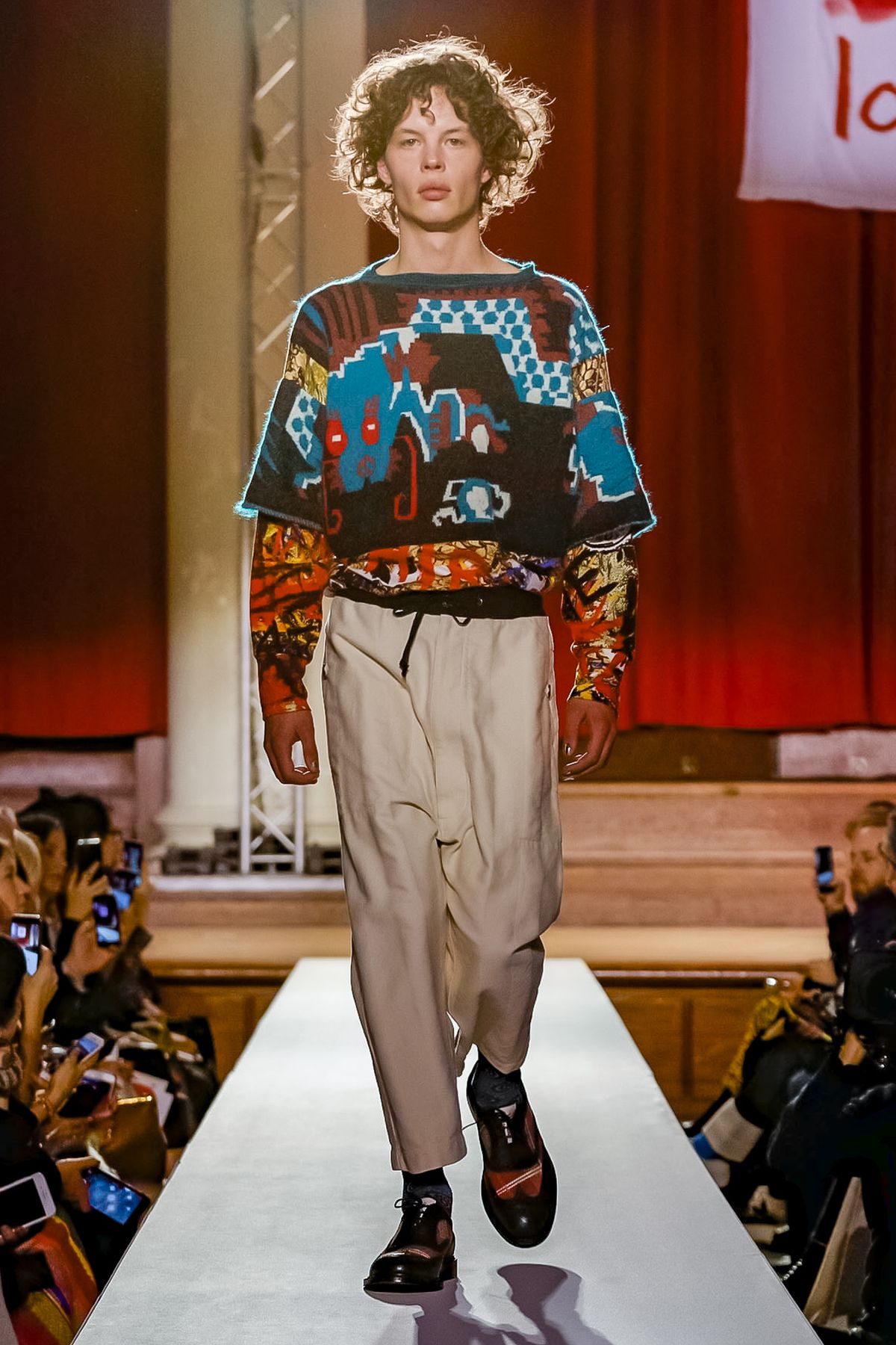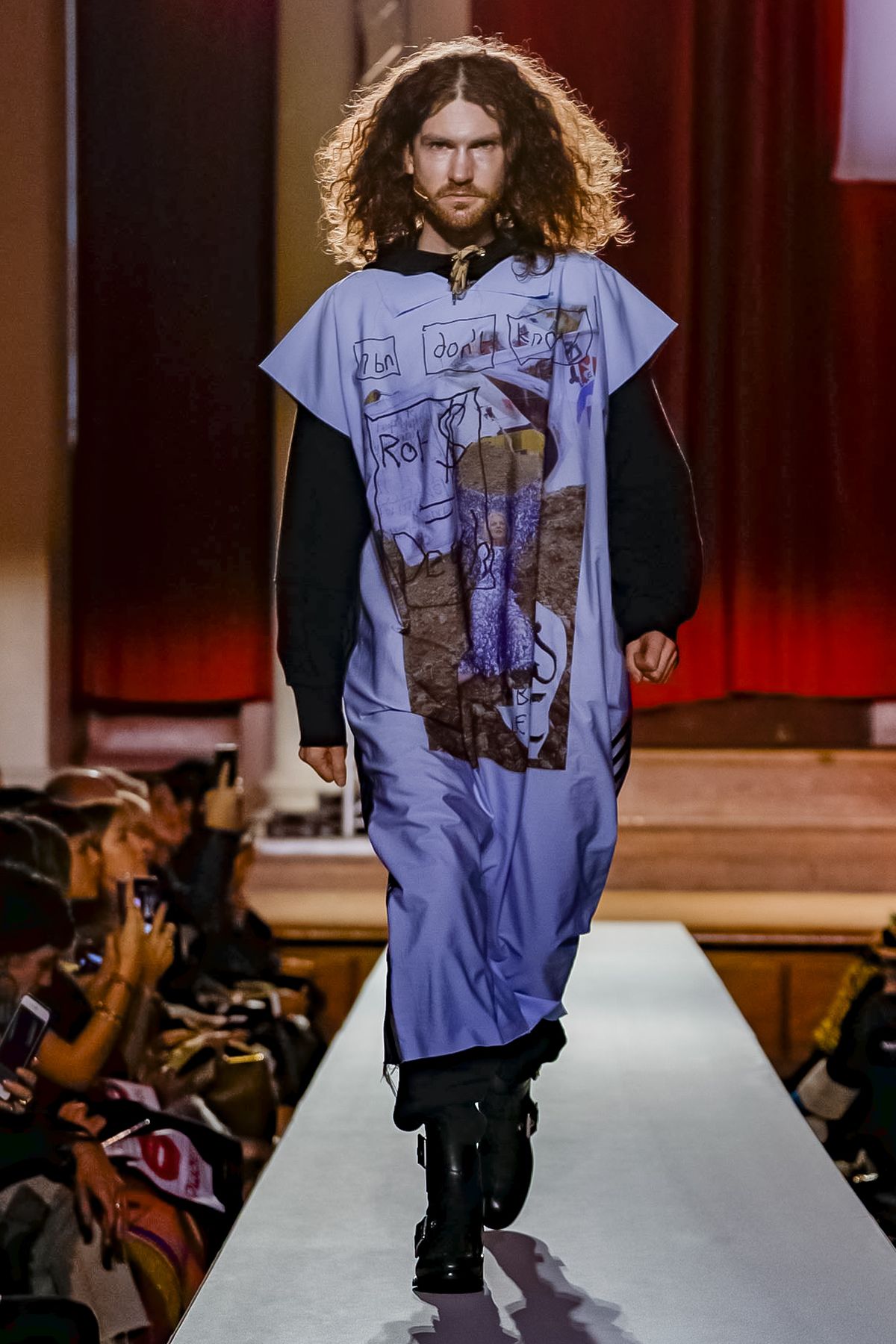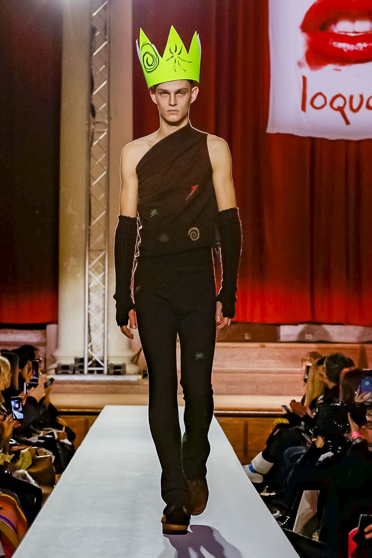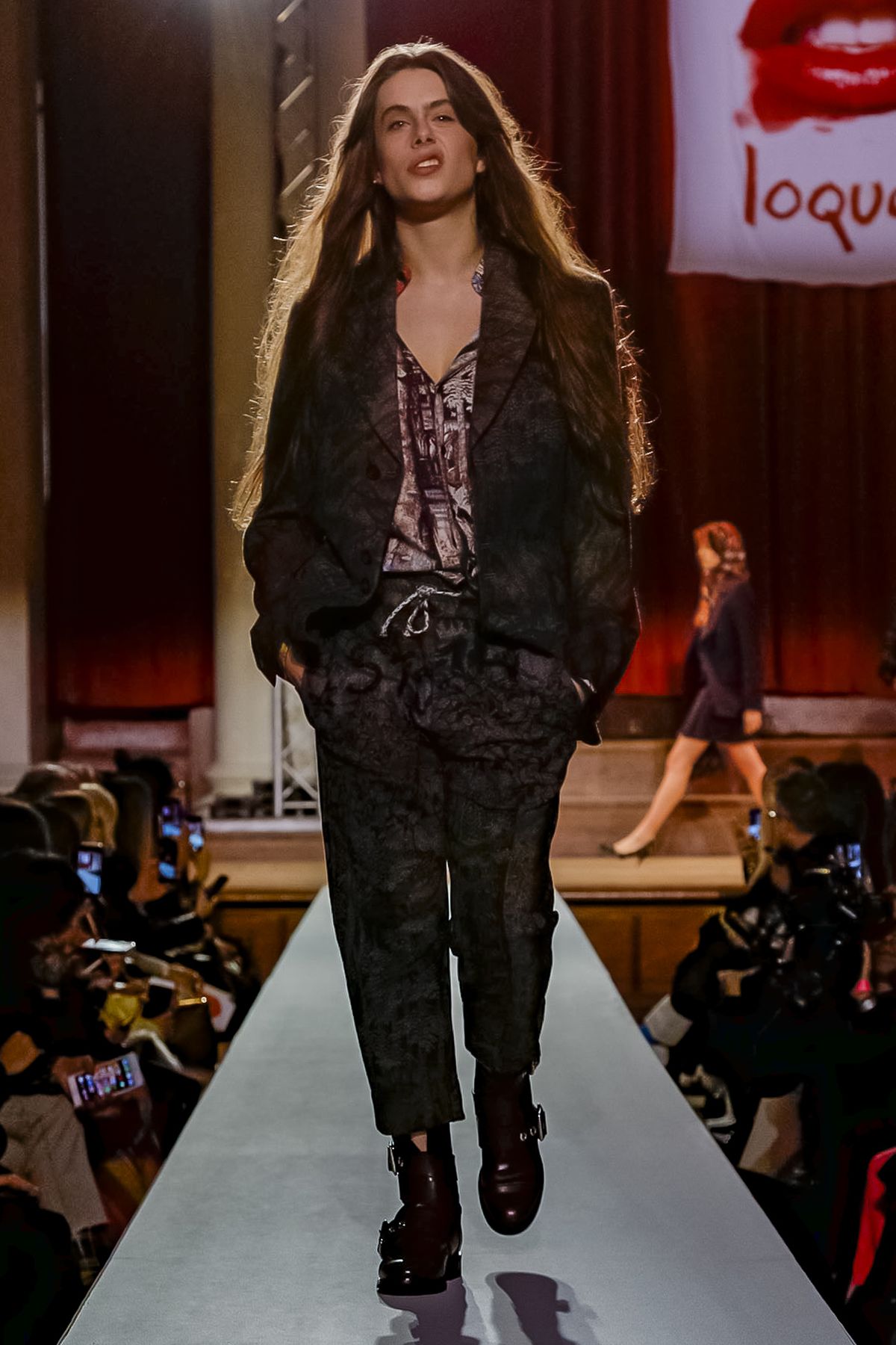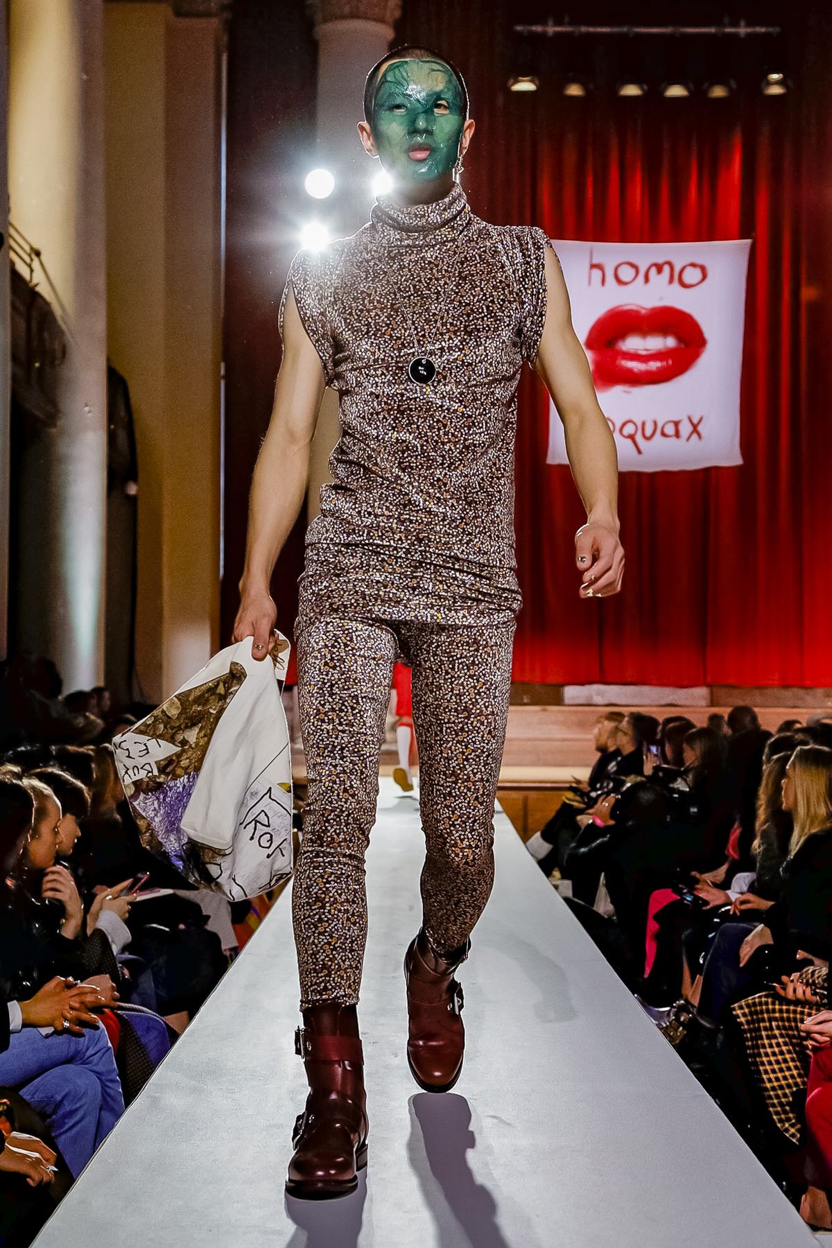 “I bought this coat last year, it’s called the Prince Coat; it’s a classic,” announced model and activist Hugo Hamlet, proudly gesturing to his oversized checked topper which, in truth, was from the fall 2018 collection, one of Westwood’s favorite styles; she repeats it every season. Fair enough; it’s a nice coat.