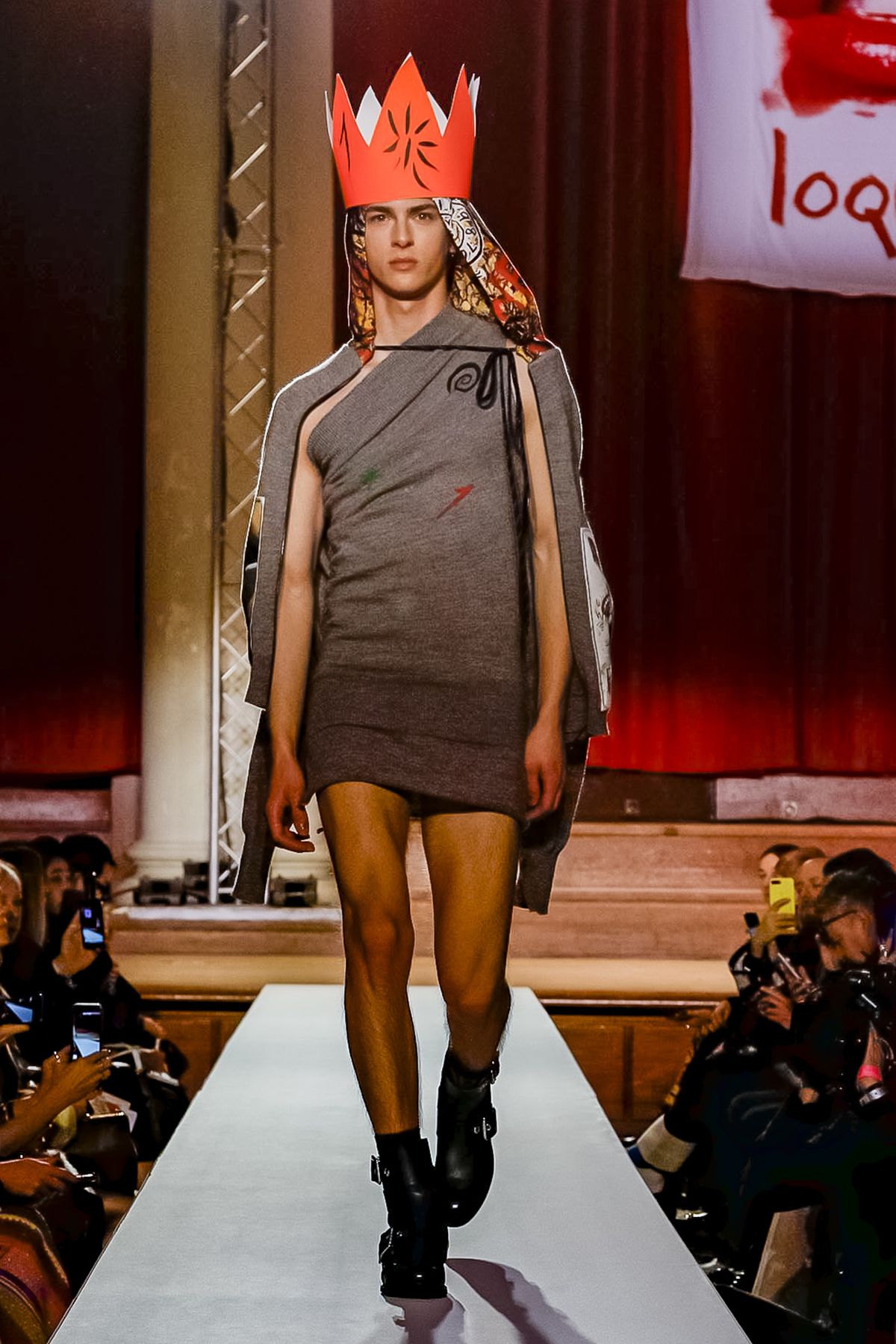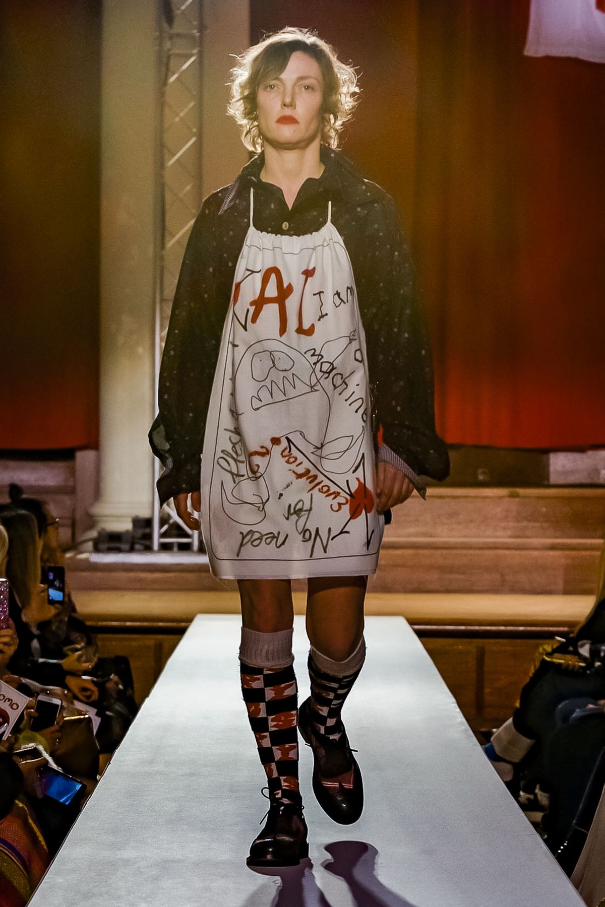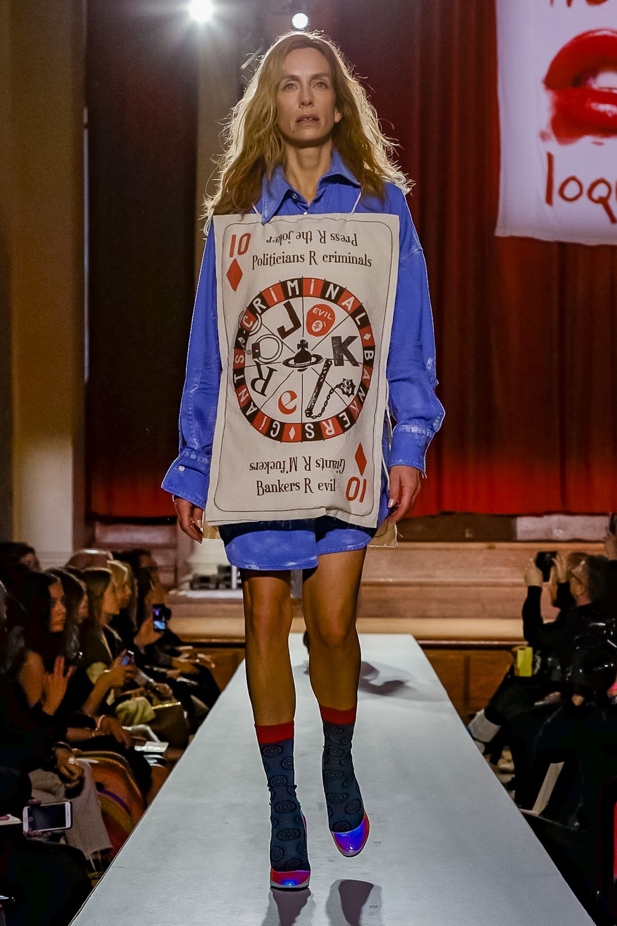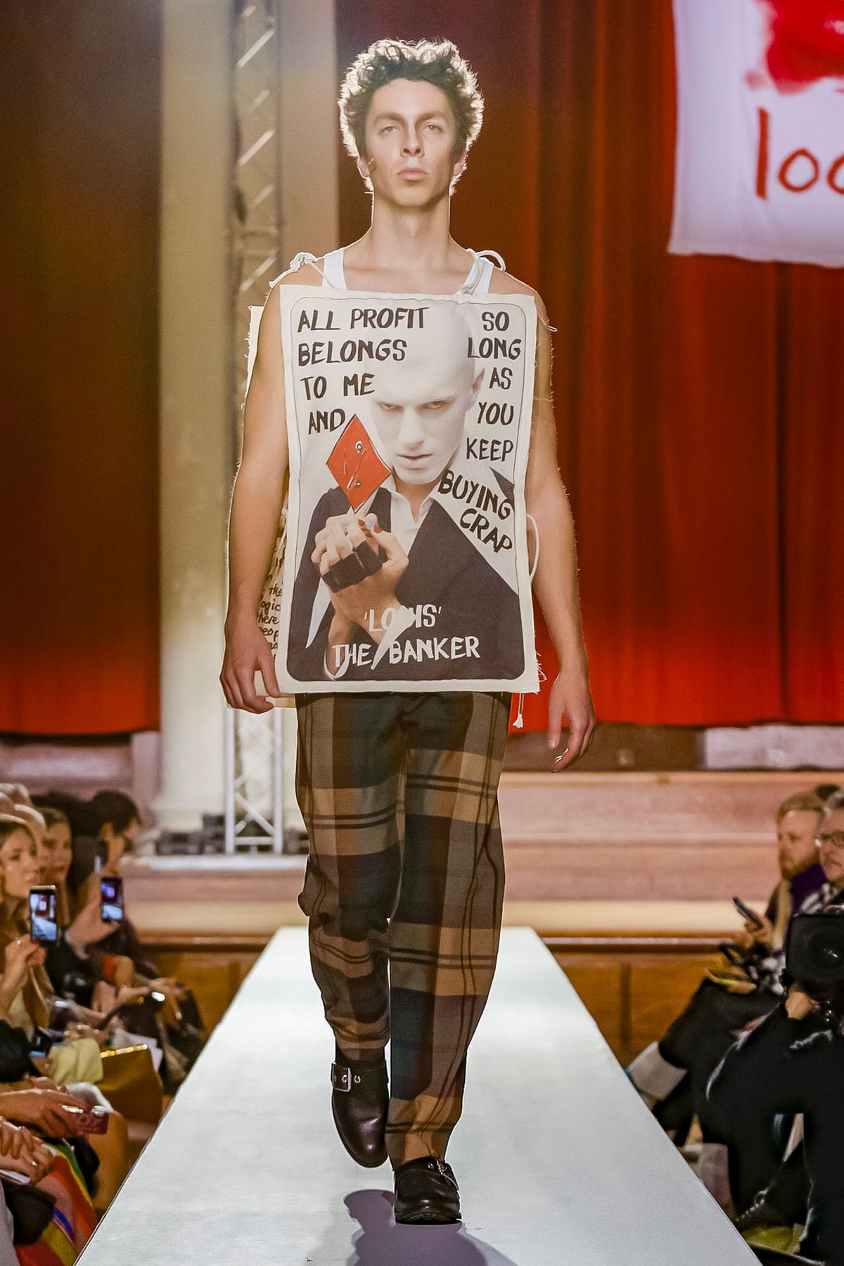 Vivienne Westwood staged her show at a former church in Westminster that operates as a concert hall for classical music performances. It was a suitably dramatic backdrop for Westwood’s fall collection-cum-manifesto, which came laden with messages.