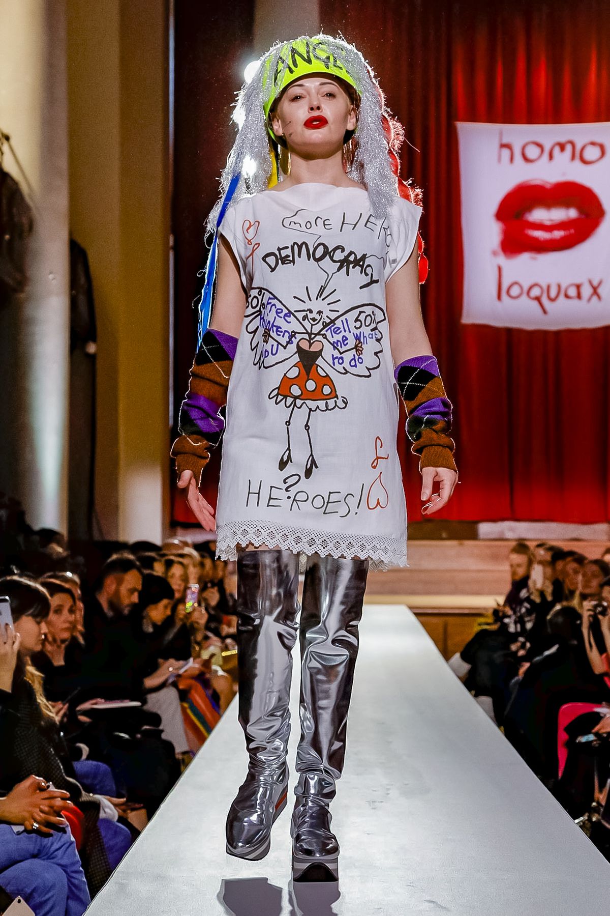 Vivienne Westwood staged her show at a former church in Westminster that operates as a concert hall for classical music performances. It was a suitably dramatic backdrop for Westwood’s fall collection-cum-manifesto, which came laden with messages.