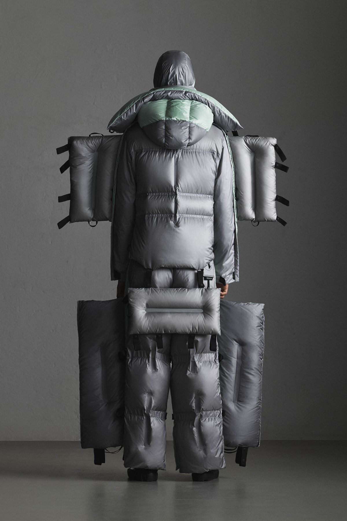 For the lookbook, photographer Amy Gwatkin and stylist Robbie Spencer put together the pieces, bi-color cushioned wingsuit.