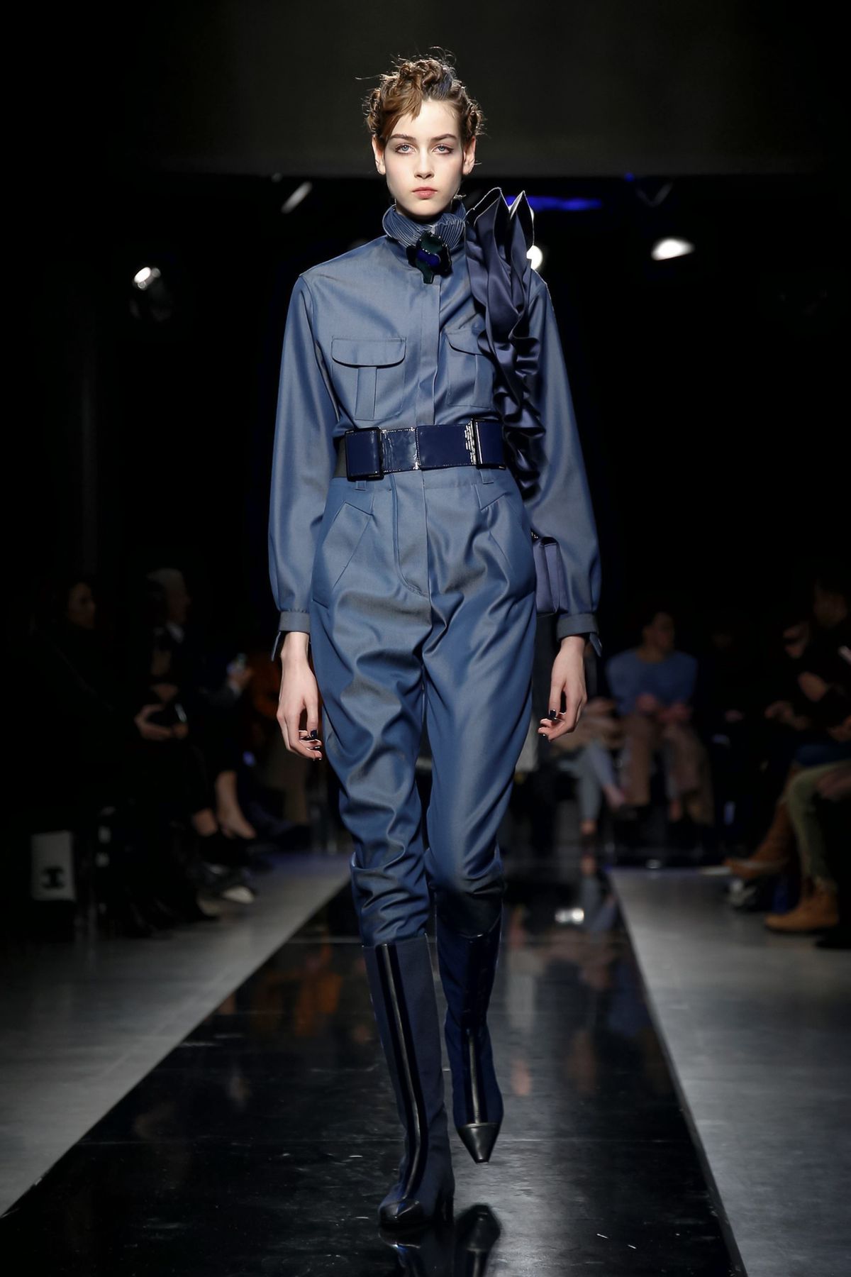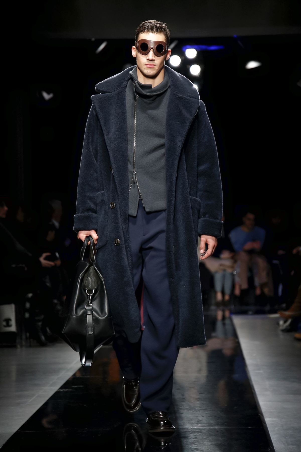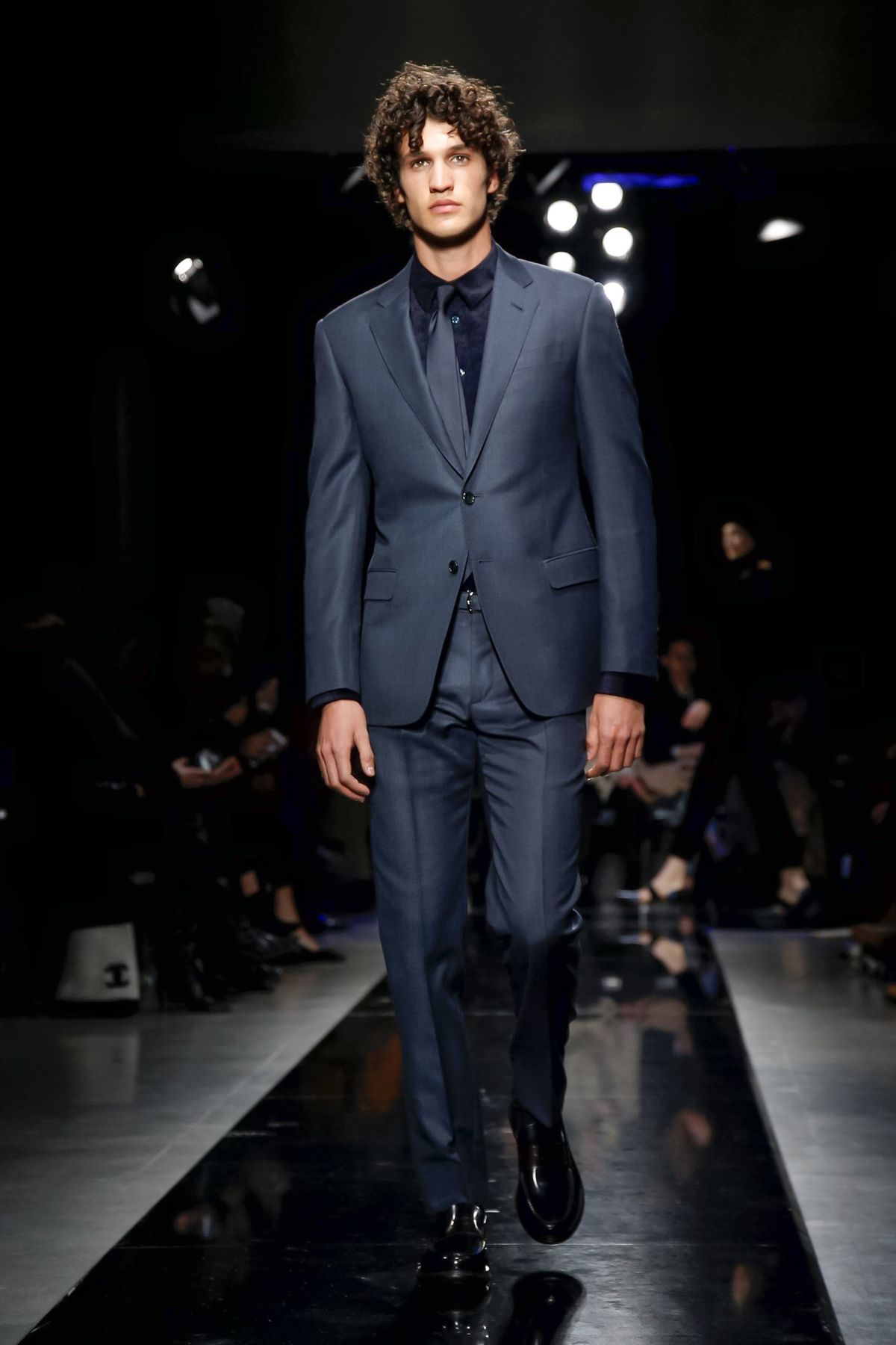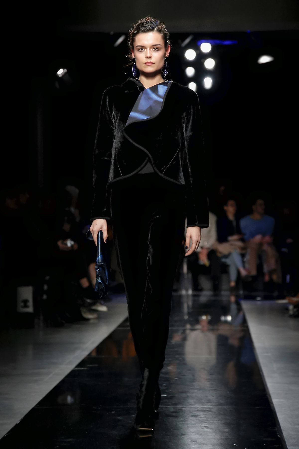 Maybe it was seeing the men and women on the runway together, united in 1,000 tones of blue and black, but there was a certain romantic lyricism to the way the collection unfolded, underscored by the smaller scale of the runway, which gave everyone orchestra seats to just what a hell of a cutter, draper and tailor the maestro still is.