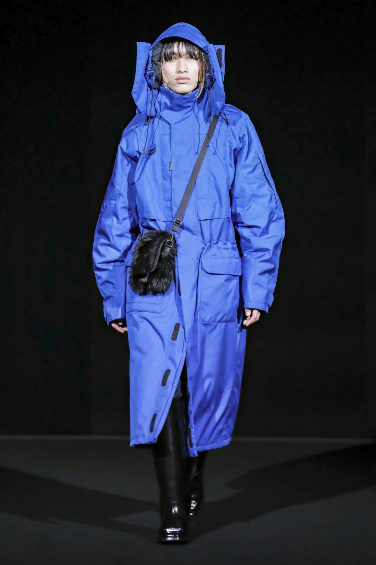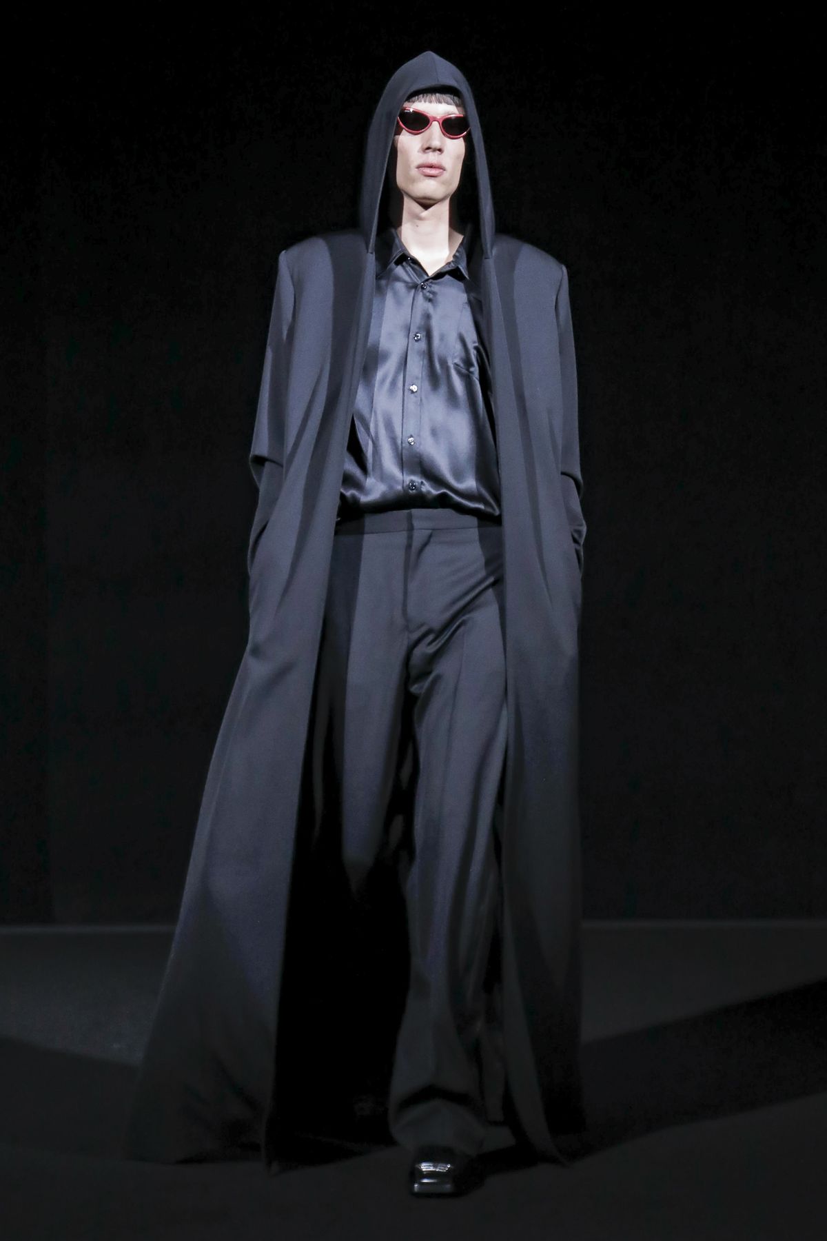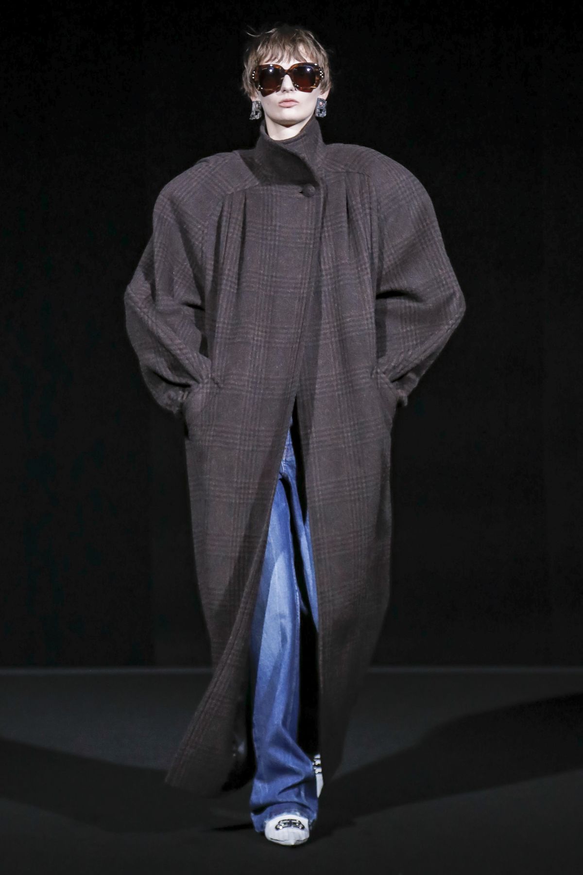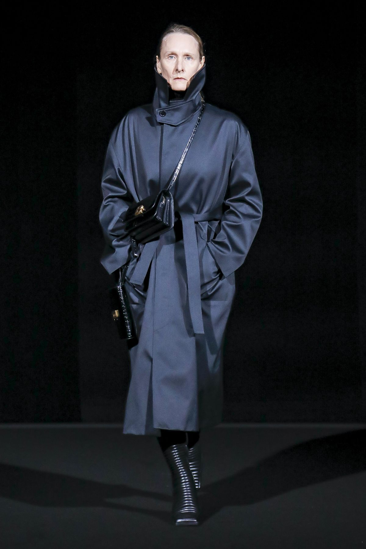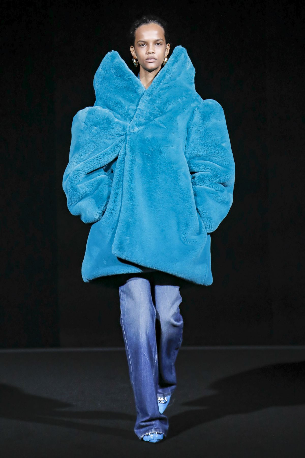 Draining collections of seasonal themes and narratives was one of the big ideas Demna Gvasalia brought to fashion, and to Balenciaga. He gave that the heave-ho for fall, and poured a vast field of fragrant asphalt upon which to parade his vision of “the real Parisian of today.” The stark set and dim, flickering lighting did not obscure the rush of bold, thrilling fashion that whisked past, almost brushing the knees of guests.