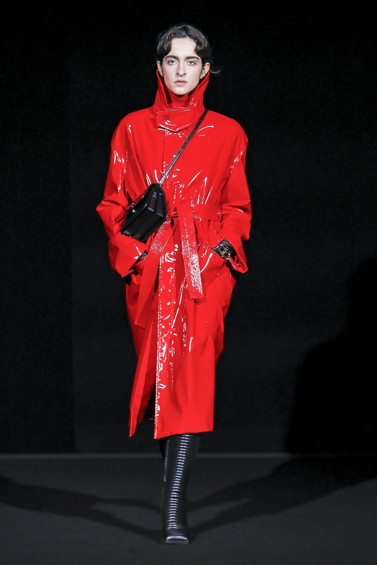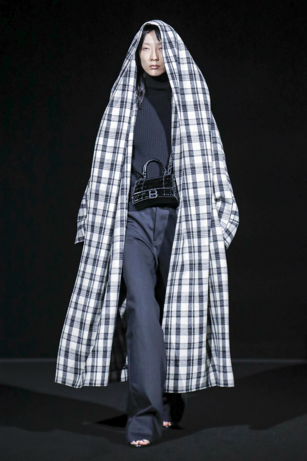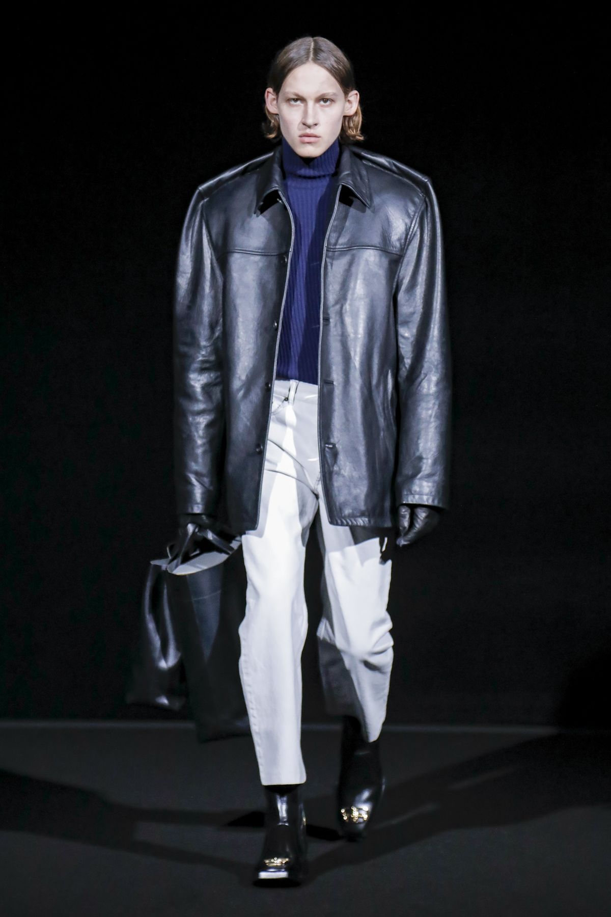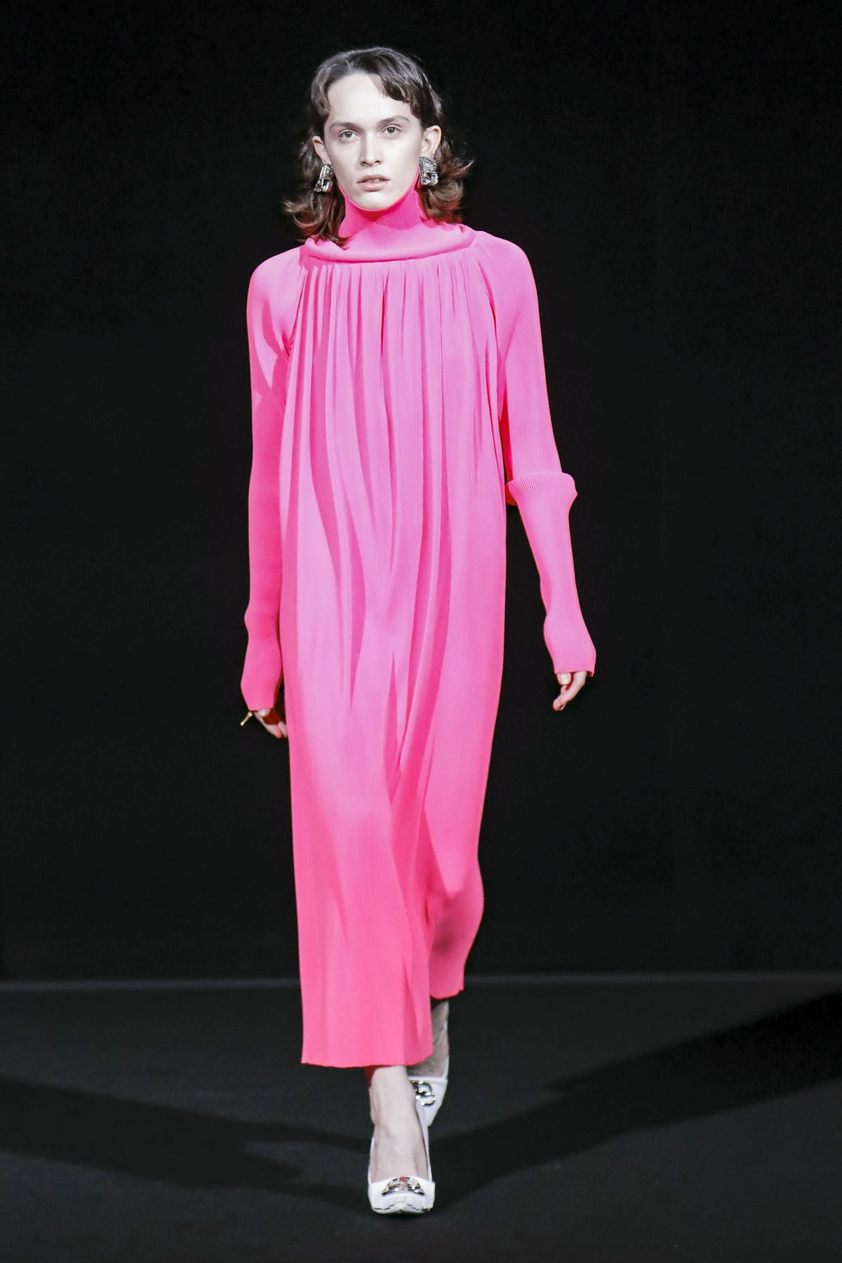 Draining collections of seasonal themes and narratives was one of the big ideas Demna Gvasalia brought to fashion, and to Balenciaga. He gave that the heave-ho for fall, and poured a vast field of fragrant asphalt upon which to parade his vision of “the real Parisian of today.” The stark set and dim, flickering lighting did not obscure the rush of bold, thrilling fashion that whisked past, almost brushing the knees of guests.