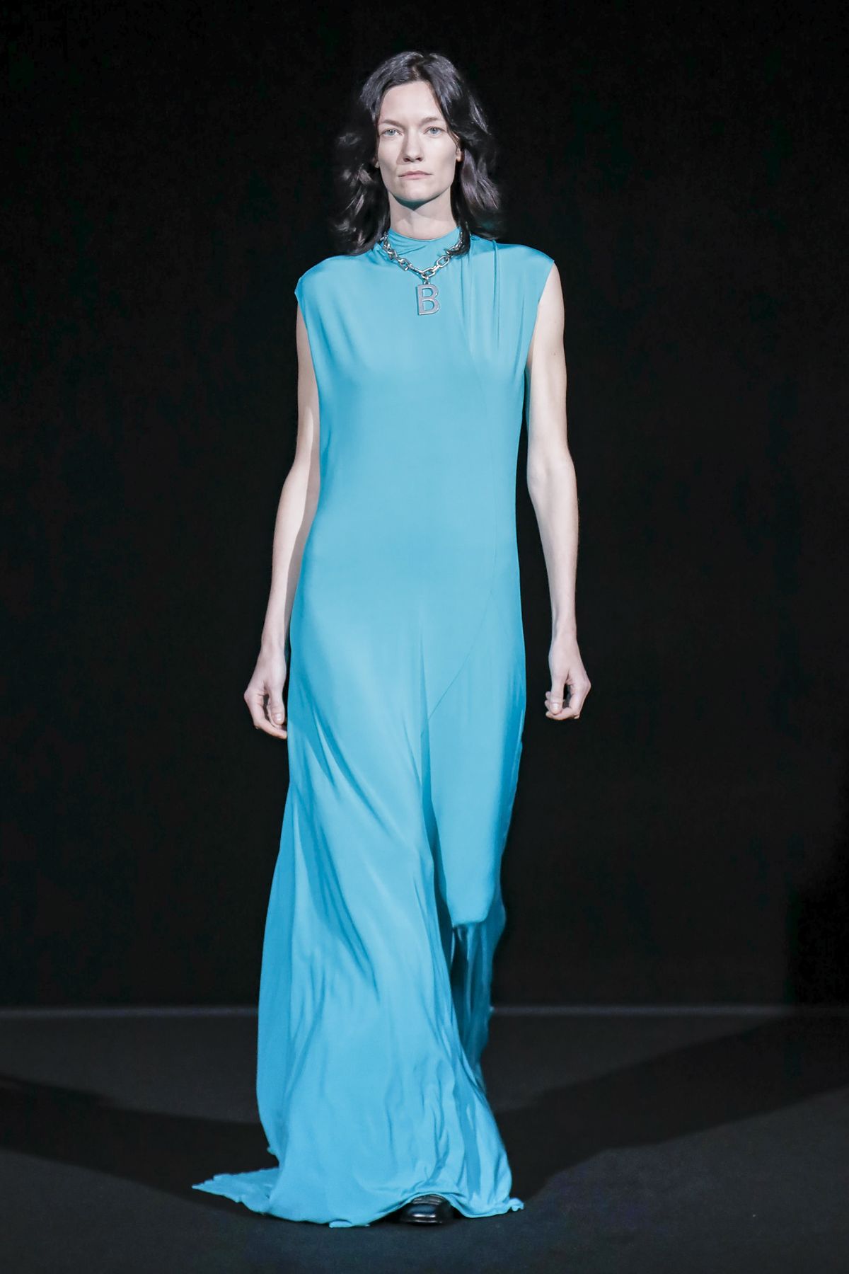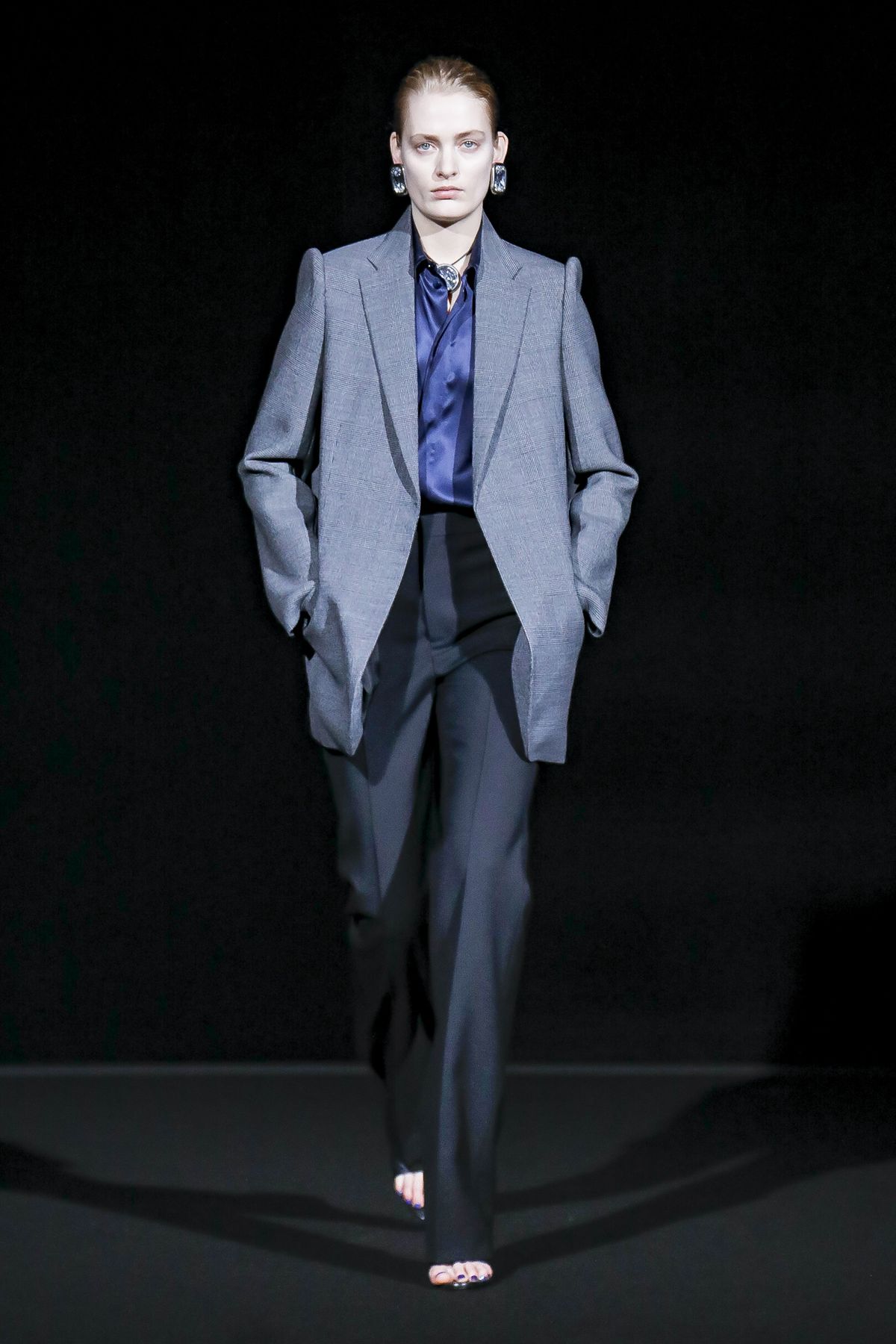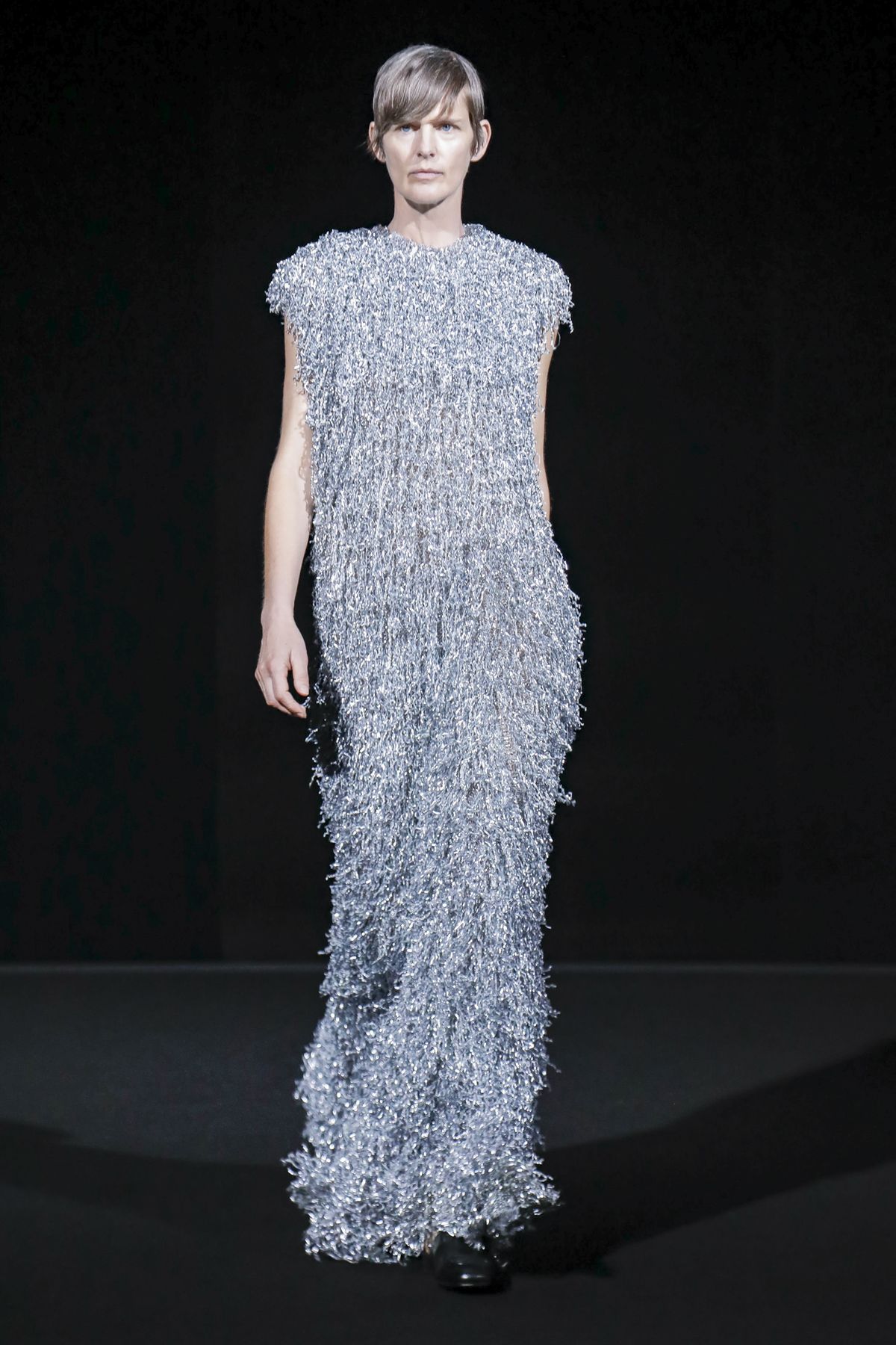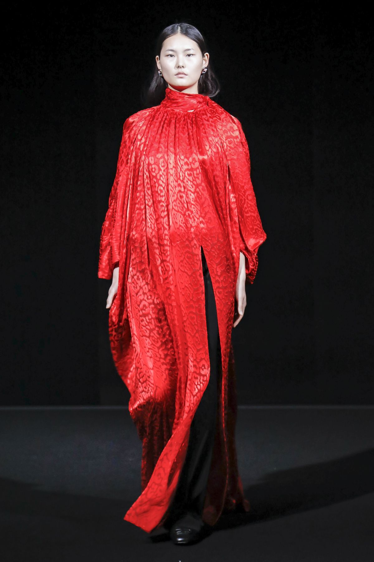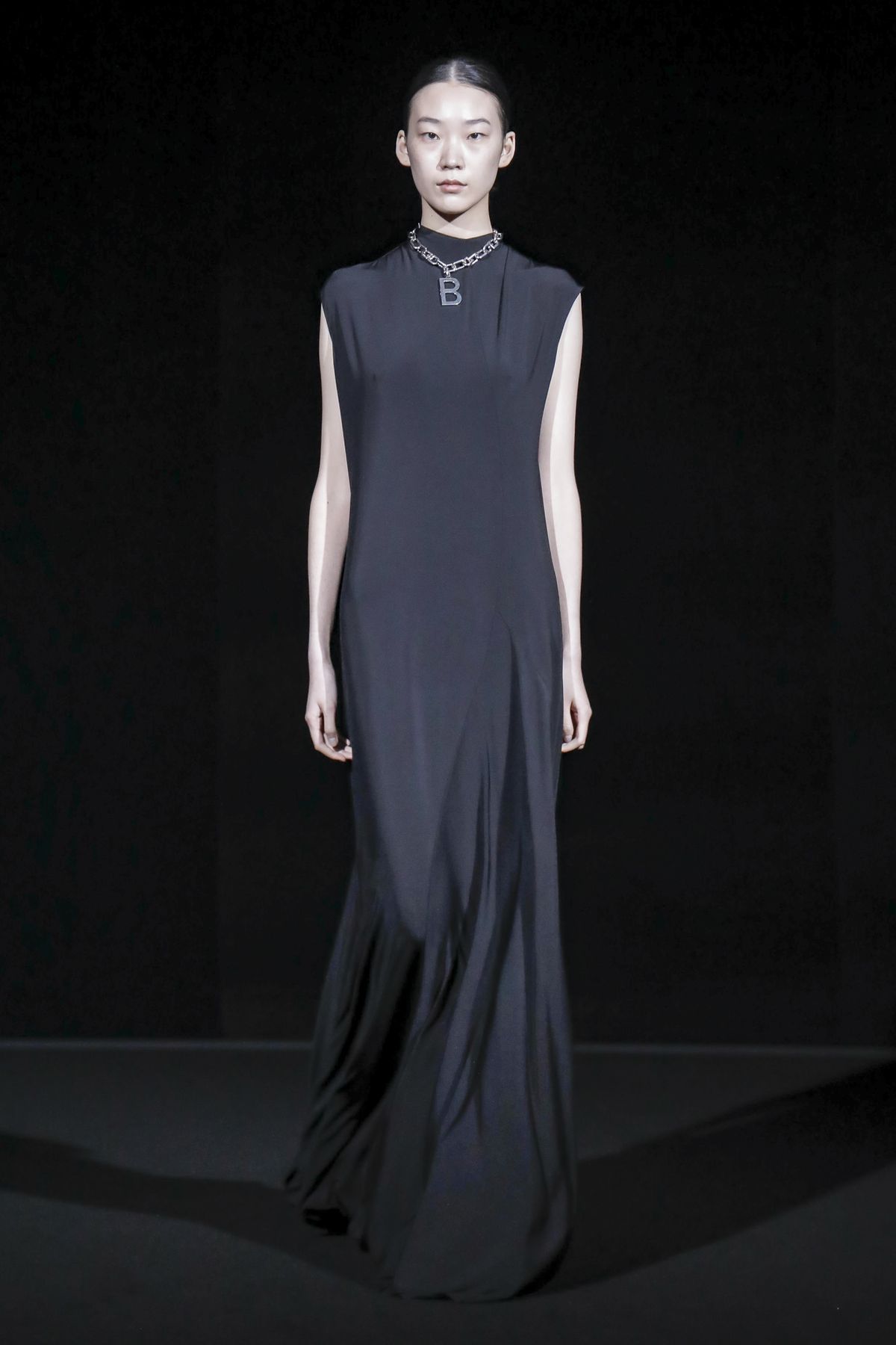 Draining collections of seasonal themes and narratives was one of the big ideas Demna Gvasalia brought to fashion, and to Balenciaga. He gave that the heave-ho for fall, and poured a vast field of fragrant asphalt upon which to parade his vision of “the real Parisian of today.” The stark set and dim, flickering lighting did not obscure the rush of bold, thrilling fashion that whisked past, almost brushing the knees of guests.