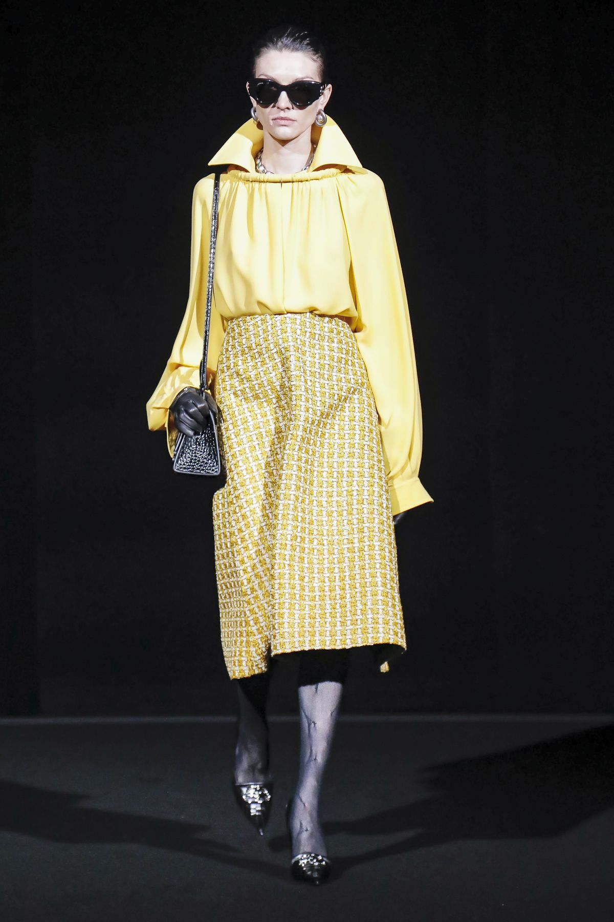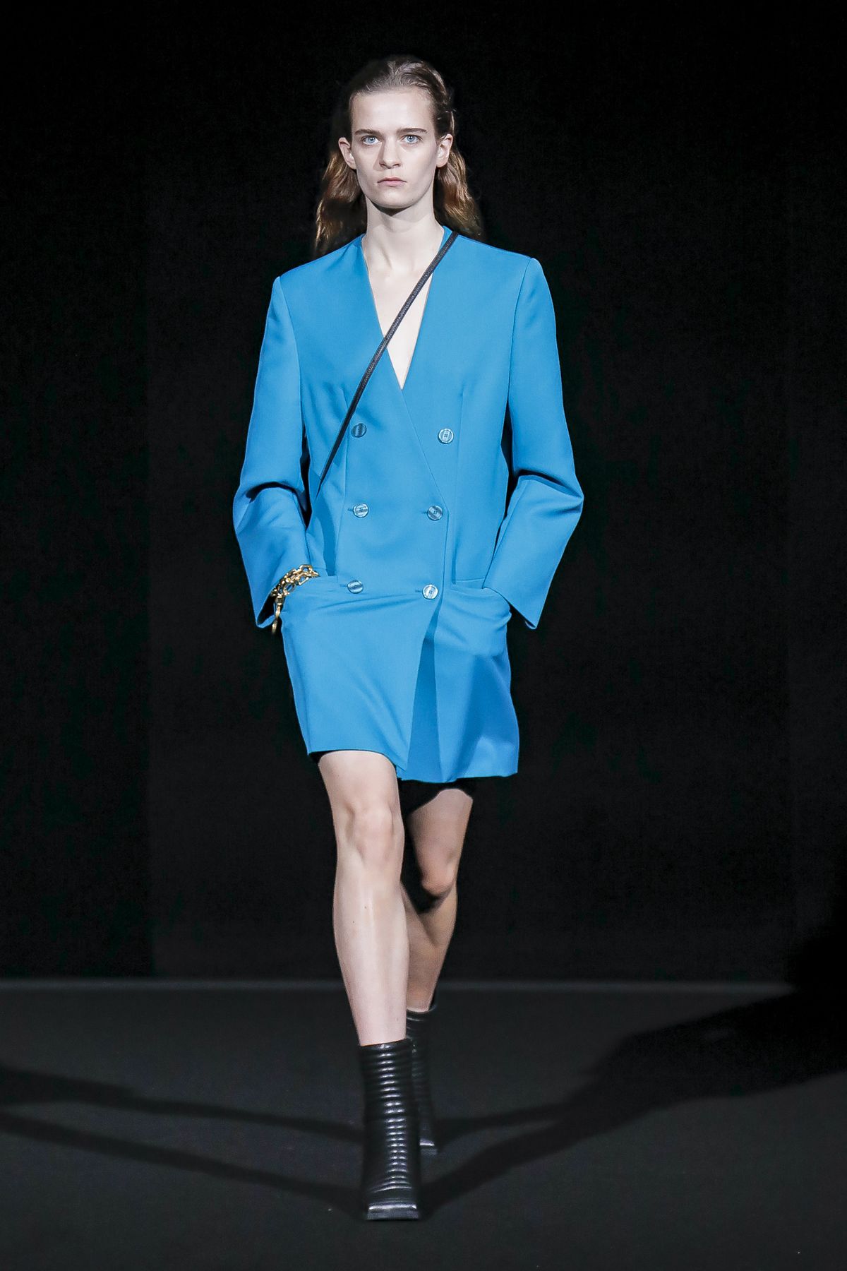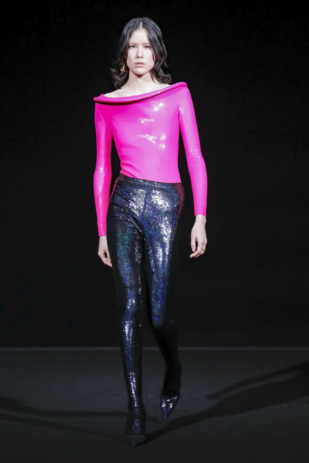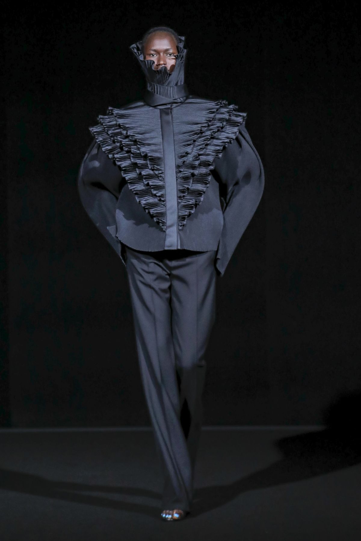 Draining collections of seasonal themes and narratives was one of the big ideas Demna Gvasalia brought to fashion, and to Balenciaga. He gave that the heave-ho for fall, and poured a vast field of fragrant asphalt upon which to parade his vision of “the real Parisian of today.” The stark set and dim, flickering lighting did not obscure the rush of bold, thrilling fashion that whisked past, almost brushing the knees of guests.