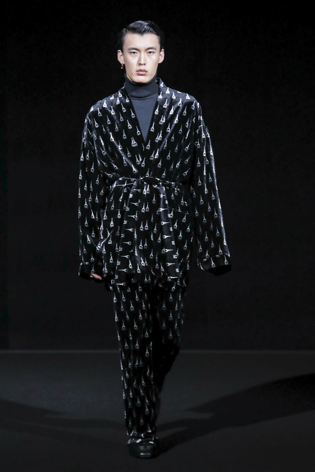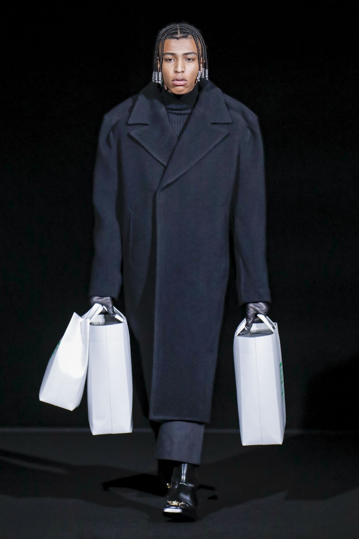 The show was far longer than usual, reflecting a third innovation: Gvasalia is dispensing with pre-collections and made this his mega statement straddling winter and spring, while maintaining multiple delivery windows. It felt like he also relished the opportunity to express in an expansive way his affection for the French capital, having relocated to Zurich last year where his signature brand, Vetements, is now based. “By moving away, I kind of fell in love again with Paris,” he mused.